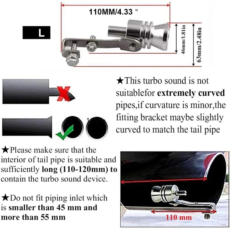 Silenciador De Carro Da Motocicleta Falsa Turbo Whistle Pipe Blow Off Simulator Universal Whistler Aluminum Silver S-XL