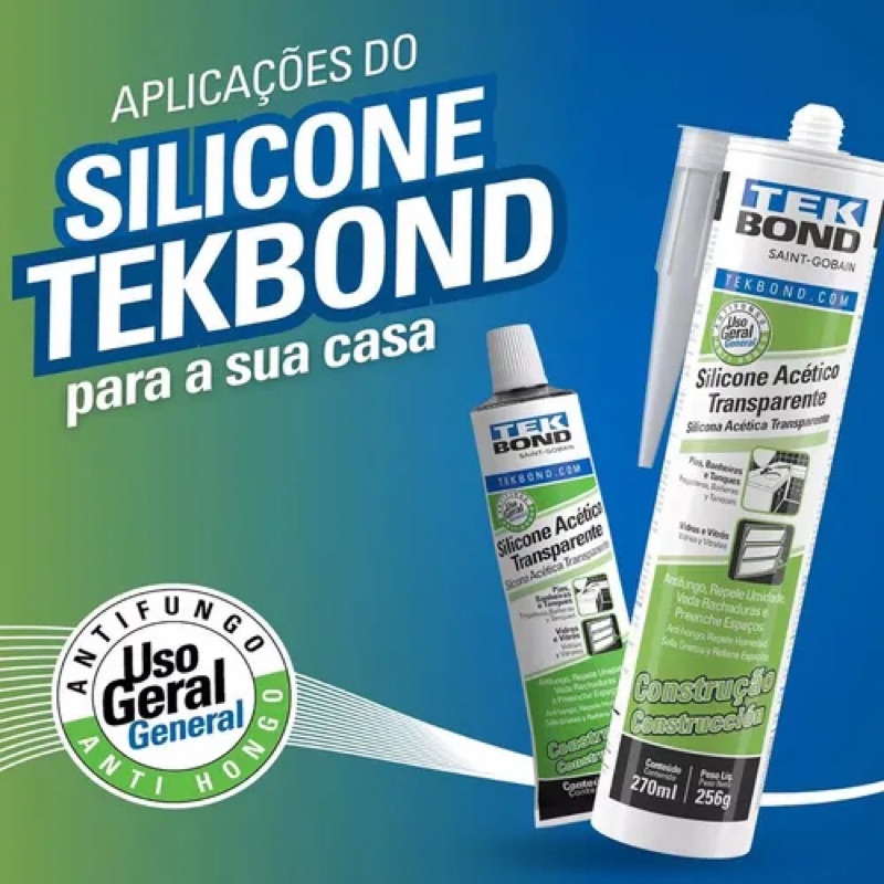 🟢 Silicone Acético Transparente 50g Tekbond – Alta Vedação e Resistência O Silicone Acético Transparente 50g Tekbond é ideal para vedação, fixação e acabamento em diversos tipos de superfícies. Fácil de aplicar, possui excelente aderência e alta resistência à umidade. 🔧 Indicado para: • Vidros • Alumínio • Cerâmica • Azulejos • Pias e banheiros • Janelas e box 💪 Benefícios: ✔ 100% transparente ✔ Ação antifungo ✔ Resistente à umidade ✔ Alta durabilidade ✔ Ótima elasticidade ✔ Secagem rápida