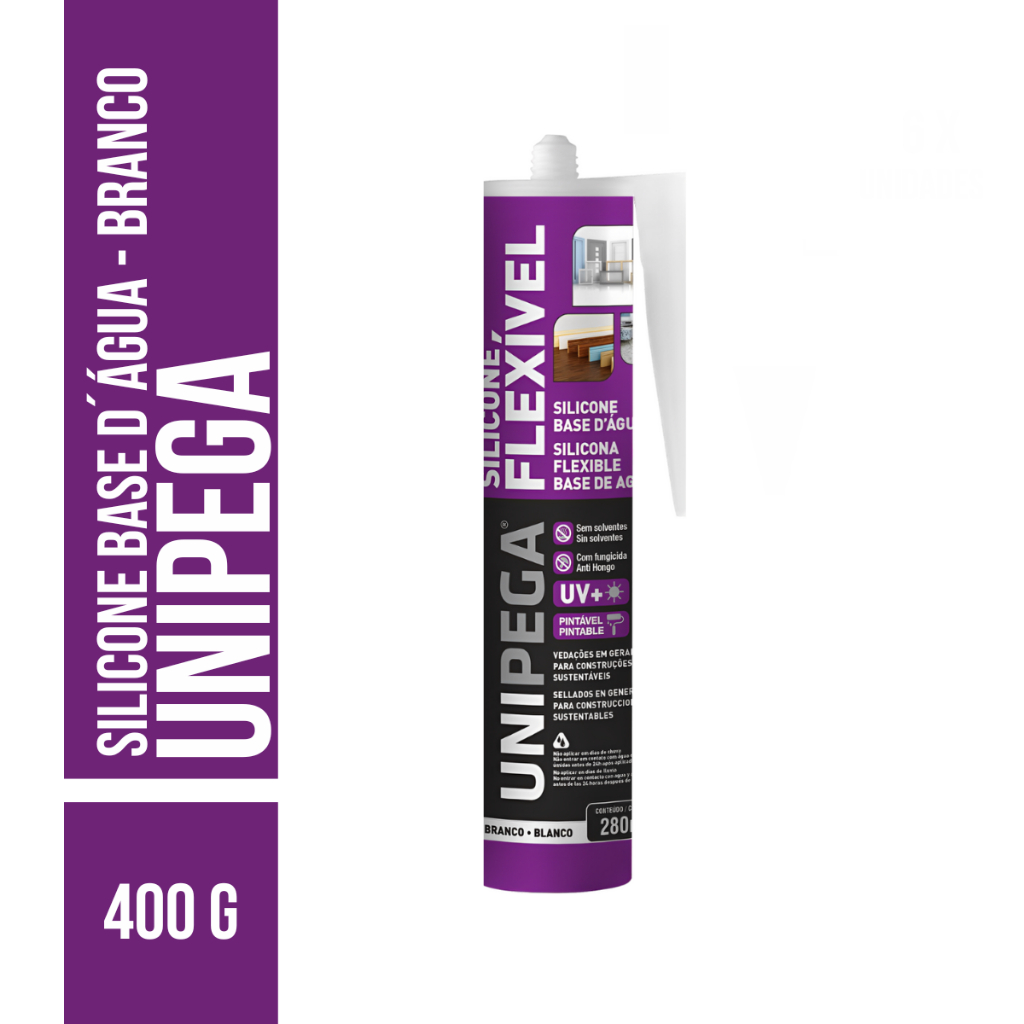 Silicone Branco Cola Selante a Base D'água Moveis Rodapé Gesso Unipega 400g