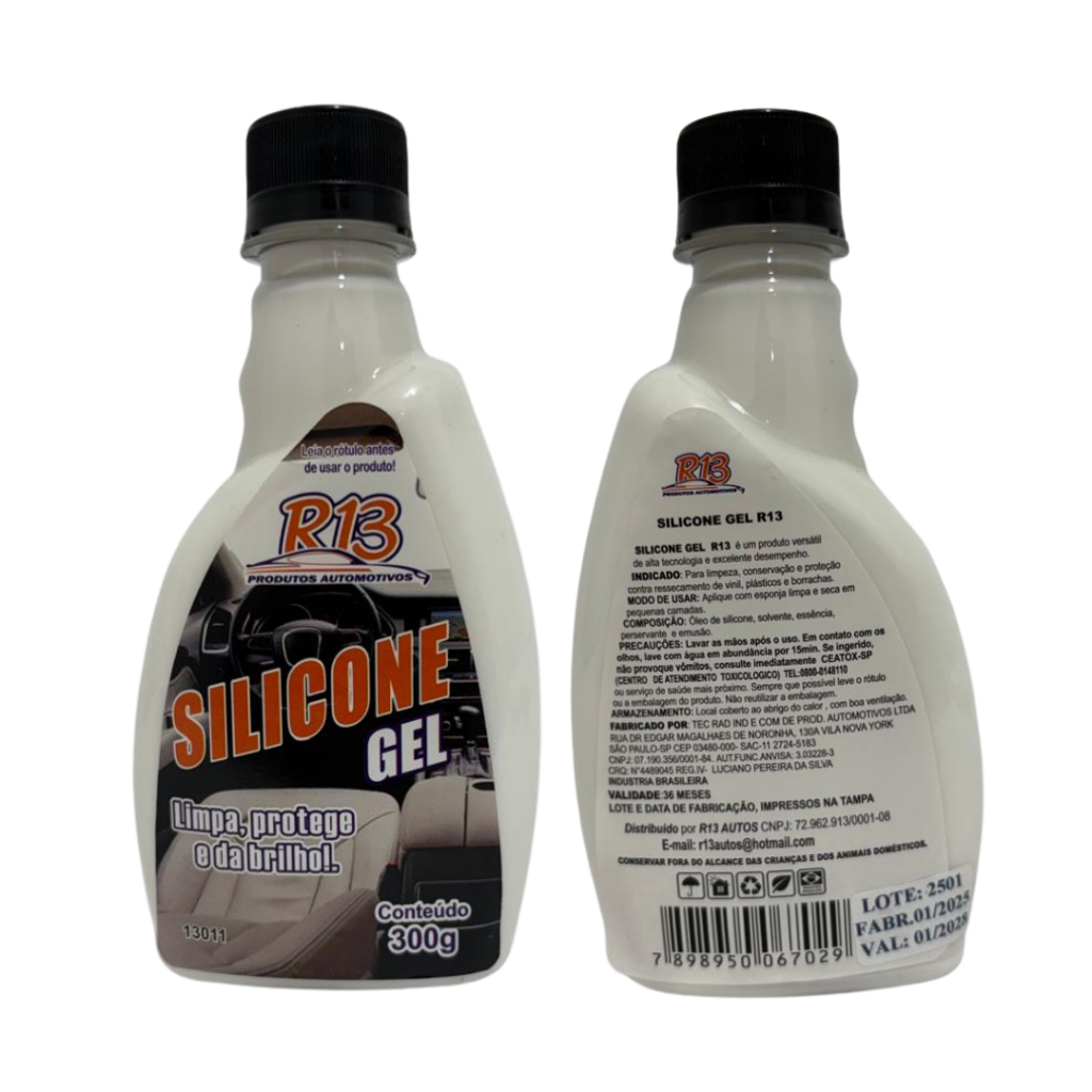 Silicone gel O silicone automotivo hidrata, protege e dá brilho nas áreas com borracha, plástico e vinil do carro. Por isso, é ótimo pra aplicar em painéis, acabamentos plásticos, pneus, para-choques e retrovisores que não são pintados!