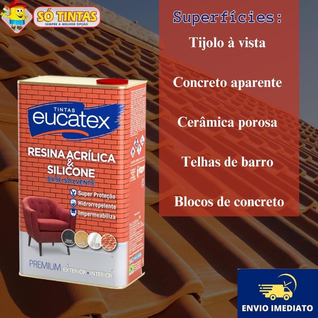 Imagine suas superfícies externas e internas sempre impecáveis, protegidas contra infiltrações e manchas indesejadas. Com Eucatex Silicone, você garante que tijolos à vista, concreto aparente, cerâmica porosa, telhas de barro e blocos de concreto mantenham sua beleza e integridade por muito mais tempo. O produto proporciona uma cobertura perfeita e um acabamento fosco elegante, sem alterar o brilho natural das superfícies, permitindo que elas "respirem" normalmente. Diga adeus às preocupações com infiltrações de água, manchas e o escurecimento precoce dos rejuntes. Sem Eucatex Silicone, suas superfícies ficam vulneráveis aos danos causados pela umidade, resultando em deterioração, manchas e reparos constantes. Não deixe que seus ambientes sofram com esses problemas que podem ser facilmente evitados. Eucatex Silicone é especialmente formulado para proteger diversas superfícies internas e externas, oferecendo alta impermeabilização e prevenindo a infiltração de água da chuva. Sua aplicação é fácil e eficiente, proporcionando alto rendimento e um acabamento fosco que mantém a aparência original das superfícies. Além disso, impede o aparecimento de manchas e o escurecimento dos rejuntes, garantindo uma proteção duradoura e eficaz. Benefícios e Características: •Ótima Cobertura: Garante uniformidade e proteção em todas as superfícies. •Alto Rendimento: Economia e eficiência em cada aplicação. •Bom Acabamento: Superfícies foscas e elegantes. •Impermeabilização de Alta Performance: Evita infiltrações e mantém a integridade estrutural. •Prevenção de Manchas: Protege contra escurecimentos e manchas indesejadas. •Uso Versátil: Adequado para ambientes internos e externos. Dados Técnicos: Superfície: Uso externo e interno. Tijolo à vista Concreto aparente Cerâmica porosa Telhas de barro Blocos de concreto Diluição: Pronta para uso Rendimento: Até 24m² por demão Embalagem: Lata (5L) Demãos: Apenas 1 demão bem farta, deixando inclusive o produto escorrer para assegurar que a superfície aplicada está saturada. Secagem: De 1 a 2 horas Aplicação: Rolo de lã de pelo alto / Pincel / Trincha / Pistola Acabamento: Fosco Aplicação do Produto: 1.Mistura: Mexa bem o Eucatex Silicone antes de usar para garantir uma consistência uniforme. 2.Primeira Demão: Utilize um rolo de pintura, pincel ou pulverizador para aplicar a primeira demão de Eucatex Silicone de forma uniforme sobre a superfície. 3.Secagem: Deixe a primeira demão secar completamente (aproximadamente 2 horas) antes de aplicar a próxima camada. 4.Segunda Demão: Aplique a segunda demão de Eucatex Silicone, garantindo a cobertura completa e uniforme da superfície. 5.Finalização: Deixe a superfície secar por pelo menos 24 horas antes de expor a área ao uso ou à chuva. Benefícios da Aplicação do Eucatex Silicone: •Facilidade de Aplicação: Produto fácil de aplicar com rolo, pincel ou pulverizador. •Proteção Eficaz: Cria uma barreira contra a infiltração de água, mantendo suas superfícies secas e livres de danos. •Prevenção de Manchas: Evita o aparecimento de manchas e o escurecimento dos rejuntes. •Durabilidade: Prolonga a vida útil das superfícies tratadas, mantendo-as em bom estado por mais tempo. Principais perguntas Acompanha nota fiscal? Sim, todos os nossos produtos são enviados com nota fiscal. O envio é por Correios? Pode ser enviado por Correios ou por transportadora privada, isso vai depender da disponibilidade das transportadoras que atendem o seu endereço. Porque não posso comprar mais de 1 unidade no mesmo pedido? Infelizmente há uma limitação por parte das transportadoras. Elas enviam apenas 1 unidade em cada pedido devido às dimensões e peso do pacote. Para mais unidades, você vai precisar fazer mais de um pedido. Só Tintas, sempre a melhor opção. Somos a maior rede de lojas de tintas no estado do Rio de Janeiro. Desde 1977, a Só Tintas atua no Rio de Janeiro oferecendo os melhores produtos e soluções em pintura imobiliária, automotiva e industrial. Somos uma empresa familiar que começou em Teresópolis e hoje temos mais de 30 lojas físicas. Trabalhamos de forma ética e transparente, com o principal objetivo de proporcionar aos nossos clientes um atendimento de excelência, provendo as melhores soluções. Nossa missão é levar cor para a vida das pessoas. Por isso a Só Tintas é Sempre a Melhor Opção.