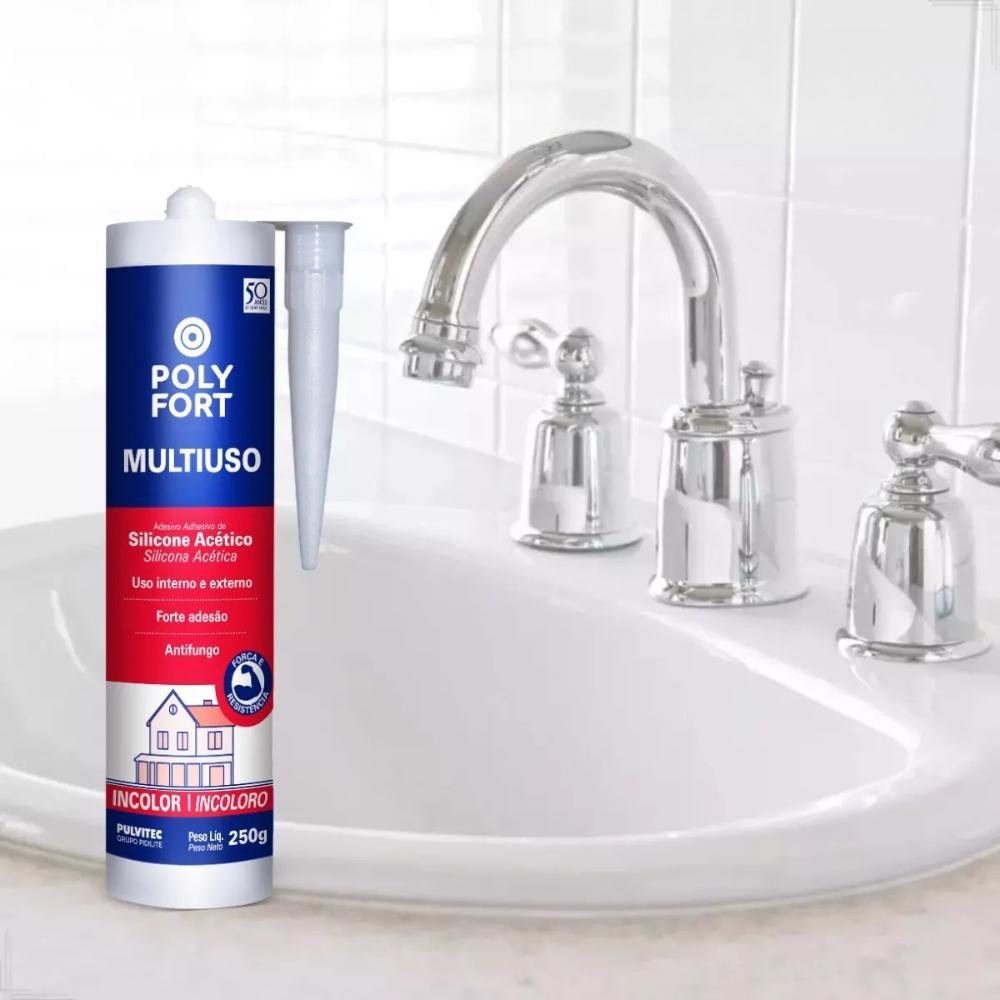 Silicone Incolor Acético Tubo 250G Para Vidro e Alumínio ZK138 PULVITECÉ um adesivo vedante à base de borracha de silicone auto vulcanizável de cura acética.Foi desenvolvido para colagem e vedação de vidro não laminado, alumínio comum e anodizado, granito (pias), cerâmica e azulejo.De cura super-rápida, não escorre e resiste a água, maresia e produtos de limpeza.Suporta torções, tensões, absorve impacto, fixa e preenche espaços.Resiste aos agentes climáticos raios UV e variações de temperatura de -30°C até 120°C.POLYSTIC VIDRO E ALUMÍNIO é mais um produto da já consagrada linha de silicones POLYSTIC!Selante 100% a base de silicone.Resistente a temperaturas contínuas de -30°C à 120°C.Não deixa proliferar mofo e fungos.Não amarela e nem descolora com o tempo.Forma pele entre 4 e 10 minutos, vulcaniza em 24 horas e em 7 dias a adesão é total.Não encolhe, acompanha a dilatação do material onde foi aplicado.Evita o aparecimento de trincas e rachaduras.100% a prova d’água – uso interno e externo.Rendimento aproximado (cordão de 3 mm): cartucho de 260 g aplica entre 30 e 35 metros lineares.DADOS TÉCNICOS:Aspecto: Pasta homogênea.Cor: Incolor.Odor: Ácido acético.Temperatura de trabalho (°C): -30 – 120.Validade: 18 meses.Ref: ZK138Marca: PulvitecGarantia: 3 meses*Imagens meramente ilustrativas.