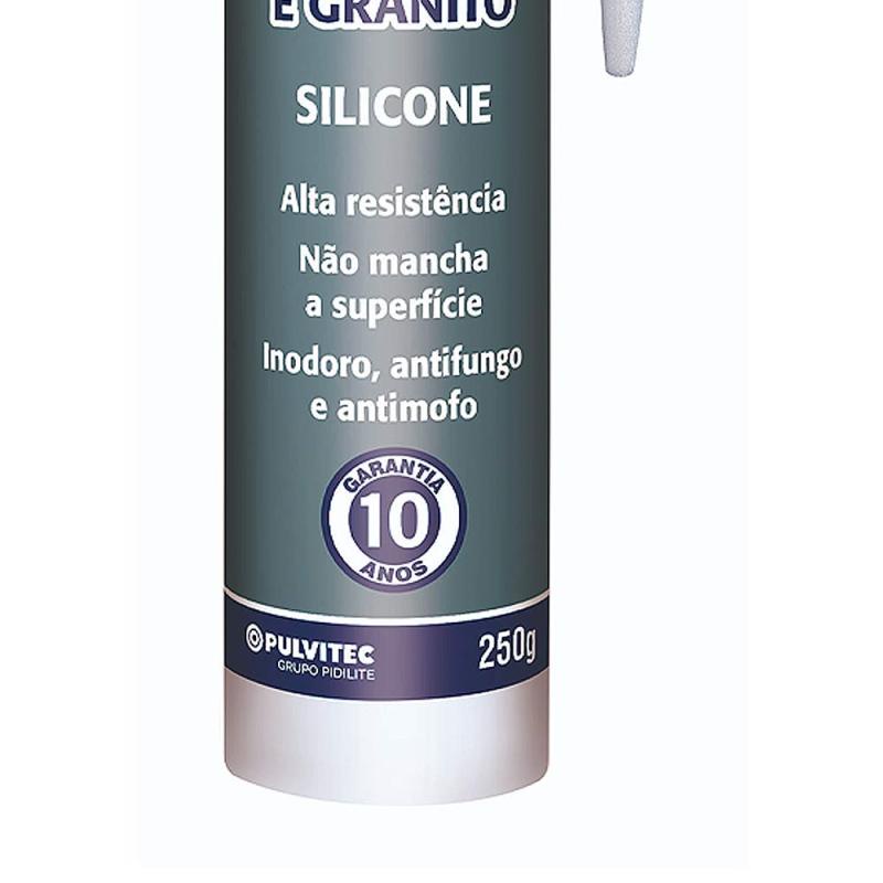 Silicone Incolor Tubo 250G Neutro Para Pedra Mármore ZN142 PULVITECÉ um elastômero monocomponente à base de silicone com sistema reticulante neutro, especialmente desenvolvido para juntas de dilatação e vedação, sela, veda e calafeta concreto, granito, mármore, vidro comum e laminado, alumínio bruto e anodizado, aço carbono e inox, azulejo, cerâmica, cobre, fibrocimento, esmalte sintético, fórmica, policarbonato, PVC, latão, madeira, metal galvanizado, resina poliéster, revestimentos pintados com tintas acrílicas, epóxi, poliuretano e zinco.Resiste às variações de temperatura, água e produtos de limpeza.Suporta tensões, absorve impactos, fixa e preenche espaços.Selante 100% a base de silicone.Sem odor.Resistente a temperaturas contínuas de -50°C à 200°C.Não deixa proliferar mofo e fungos.Não amarela e nem descolora com o tempo.Forma pele entre 7 e 15 minutos, vulcaniza em 24 horas e em 7 dias a adesão é total.Não encolhe, acompanha a dilatação do material onde foi aplicado.Evita o aparecimento de trincas e rachaduras.100% a prova d’água – uso interno e externo.Rendimento aproximado (cordão de 3 mm): cartucho de 250 g aplica entre 30 e 35 metros lineares.DADOS TÉCNICOS:Aspecto: Pasta homogênea.Cores: Incolor.Odor: Inodoro.Temperatura de trabalho (°C): -50 – 200.Validade: 18 meses.Ref: ZN142Marca: PulvitecGarantia: 3 meses*Imagens meramente ilustrativas.