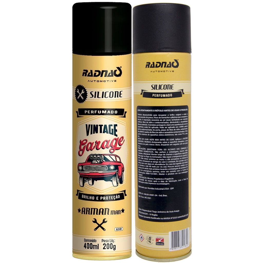 Silicone Spray Automotivo Perfumado Garage Arman Man Rosa Radnaq 400ml Para Carro