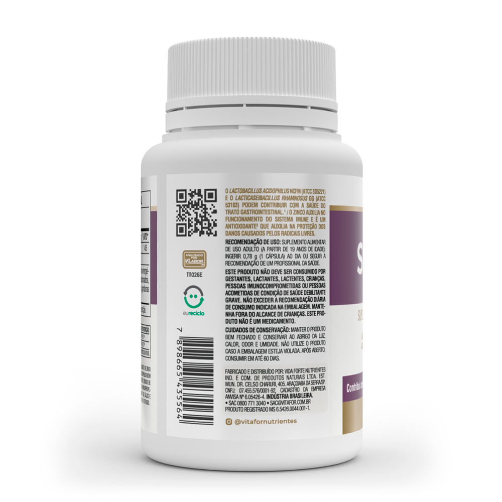 Simfort Femme Vitafor Benefícios do produto: A associação Bifidobacterium lactis BI-07 (ATCC SD5220), Lactobacillus acidophilus NCFM (ATCC SD5221), Bifidobacterium lactis BI-04 (ATCC SD5219) e Lactic