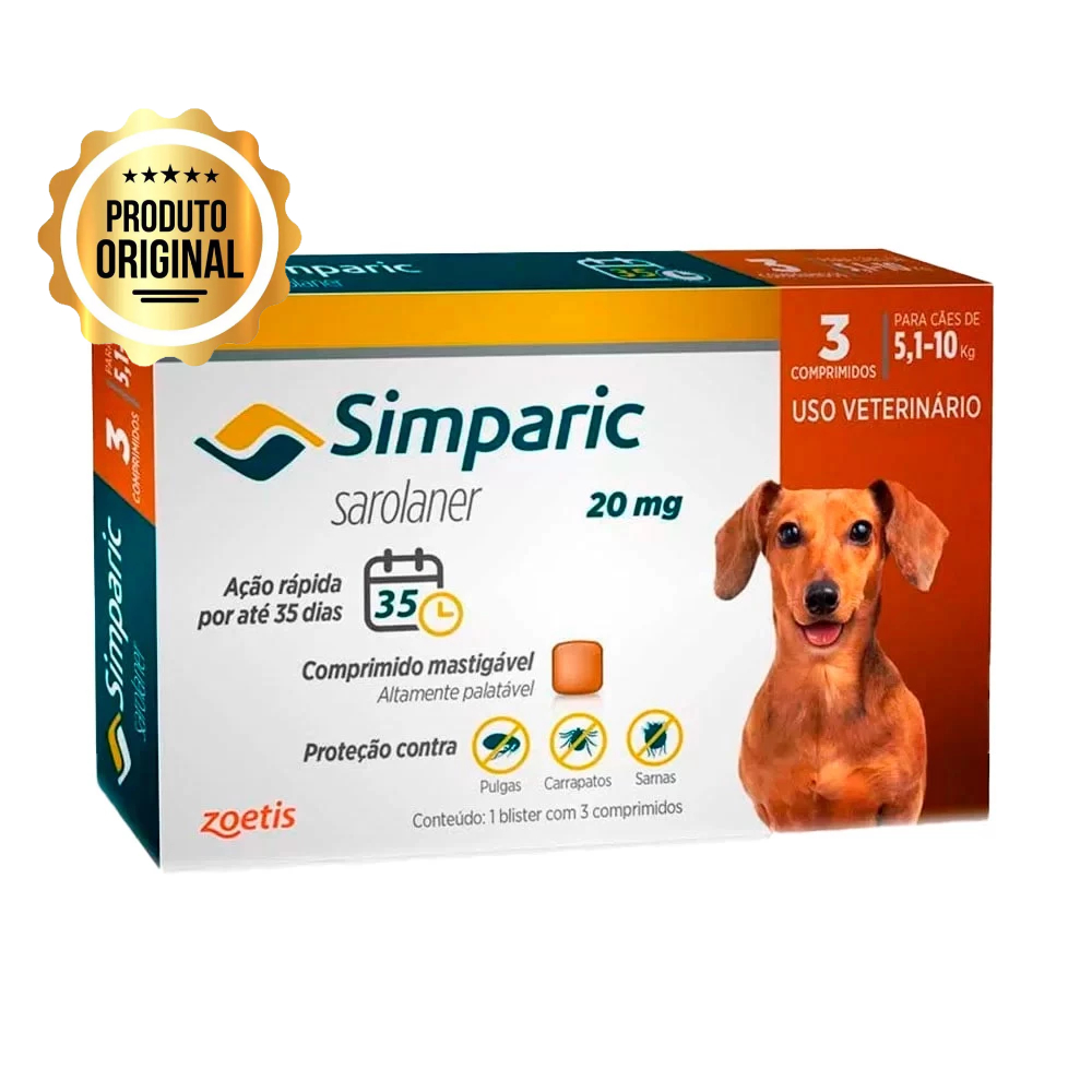 | Antipulgas Simparic 20mg para Cachorros de 5,1kg Até 10kg com1 comp... | R$ 98,88 | — | 5.0/5 | 30 |