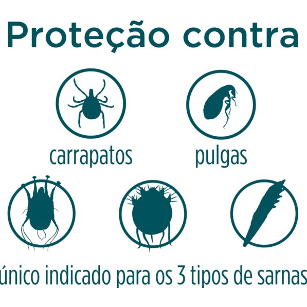 - Mata as pulgas antes que produzam ovos - Controle de dermatite alérgica por picada de pulga (DAPP) ; - Possui ação rápida: fazendo efeito em 3 horas, mantendo-se por até 35 dias; - Combate também três tipos de sarnas: Sarcópticas, Demodécica e Otodécica; - Indicada para cães a partir de 8 semanas de idade e com acima de 1,3 Kg; - Pode ser utilizado em cachorros de portes e raças diferentes; - Sim, Simparic extermina carrapatos e pulgas instantaneamente e age além do período de tratamento mensal -Simparic é eficaz contra 11 espécies de carrapatos. O Antipulgas Zoetis Simparic 20 Mg para Cães 5,1 a 10 kg é utilizado para o tratamento das infestações por pulgas e sarna sarcótica. Após a administração do Simparic, a sua atividade contra pulgas dura, pelo menos, 5 semanas. O medicamento também pode ser utilizado como parte de uma estratégia de tratamento para o controle da dermatite alérgica por picada de pulga (uma reação alérgica às picadas de pulga). Contém a substância ativa sarolaner. Modo de Usar : O Simparic está disponível sob a forma de comprimidos mastigáveis (5, 10, 20, 40, 80 e 120 mg) e só pode ser obtido mediante receita veterinária. É necessário utilizar o(s) comprimido(s) de dosagem adequada, de acordo com o peso do cão. Para o tratamento das infestações de pulgas, o Simparic deve ser administrado uma vez por mês durante a época de pulgas. Para o tratamento da sarna sarcótica, o Simparic é administrado uma vez por mês, em dois meses consecutivos. Simparic é um comprimido mastigável, sendo altamente palatável, podendo ser administrado com o sem alimentos. Sua fórmula age contra as pulgas resistentes, pode ser utilizado como parte do tratamento estratégico para controle de dermatite alérgica a picada de pulgas (DAPP). Especificações Indicação Cachorros Porte Pequeno Idade Filhotes, Adultos, Idosos Tipo de Antipulgas Oral Composição Sarolaner Frequência Recomendada (dias) 30 Marca Simparic