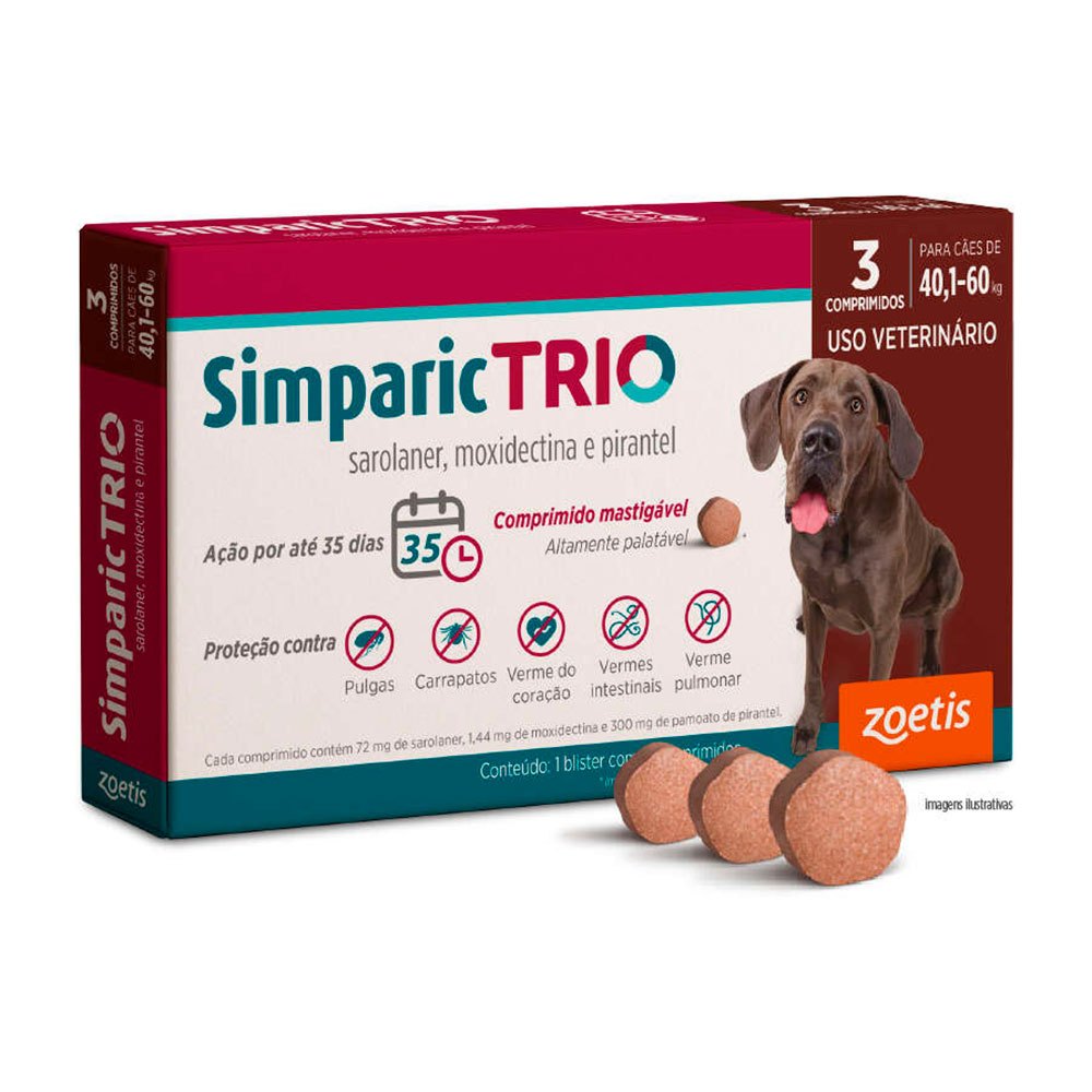 Simparic Trio 72mg Antipulgas e Carrapatos Para Cães 40,1 a 60kg 3 Comprimidos