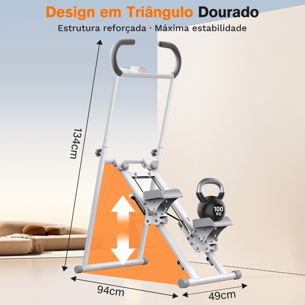 Simulador de Caminhada e Escalador Vertical Dobrável – Treine em Casa com Conforto e Eficiência Transforme seu lar em uma academia completa! Perfeito para quem busca resultados rápidos sem sair de casa, nosso Simulador de Caminhada une queima de gordura, definição muscular e baixo impacto em um único aparelho. 🔥 TREINO DE ALTA INTENSIDADE EM POUCO TEMPO Não tem tempo? Sem problemas! Apenas 20 minutos no simulador de escadas equivalem a: 180 min de ciclismo 🚴 120 min de yoga 🧘 60 min de natação 🏊 20 min de corrida intensa 🏃 🔇 ULTRA SILENCIOSO (Ideal para Apartamentos!) Com um design de polias de baixo ruído, ele opera a apenas 25dB. É tão silencioso que você pode treinar enquanto assiste TV ou com pessoas (e pets!) dormindo na mesma sala, sem incomodar os vizinhos. 📐 DOBRÁVEL E COMPACTO – CABE EM QUALQUER CANTO Mora em um espaço pequeno? Ele foi feito para você. Quando dobrado, ocupa apenas 0,2 m². Terminou de usar? É só dobrar e guardar atrás da porta ou no canto da sala. ⚙️ TECNOLOGIA E CONFORTO PARA O SEU TREINO Níveis de Ajuste: Adapte o treino ao seu nível! Conta com 4 ajustes de altura no guidão e 3 ângulos de inclinação (37°, 47° e 57°) para simular desde uma caminhada leve até uma subida íngreme. Monitor LCD Integrado: Acompanhe em tempo real seu tempo, calorias queimadas e ritmo (contagem). Design em Triângulo Dourado: Estrutura reforçada em aço que garante máxima estabilidade e segurança. Pedais Seguros: Pedais largos, reforçados e com textura antiderrapante, além de pés emborrachados para não riscar o chão. 📋 ESPECIFICAÇÕES TÉCNICAS (Conforme imagens): Cor: Preto com detalhes em Azul Altura Máxima: 134 cm Comprimento (base): 94 cm Largura (base): 49 cm Espaço ocupado (dobrado): 0,2 m² Capacidade Máxima: Suporta até 120 kg (testado com extrema carga para sua segurança). 💡 PARA QUEM É INDICADO? Quem quer emagrecer, afinar as pernas e empinar os glúteos com eficiência. Quem precisa de um equipamento versátil que não ocupe a casa toda. Quem valoriza a praticidade de treinar a qualquer hora, longe de academias lotadas. Garanta já o seu e dê o primeiro passo para a sua melhor versão!