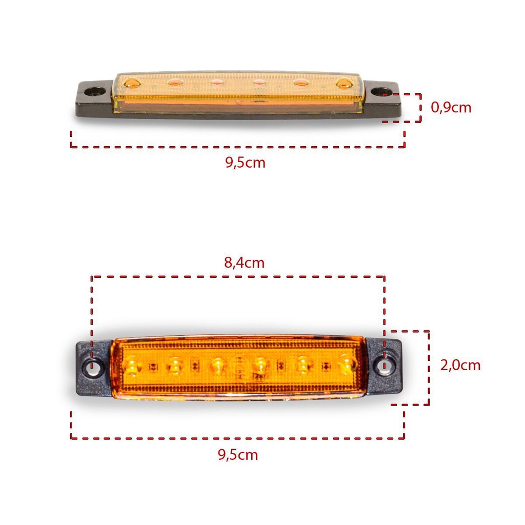 Sinalizador Lanterna Delimitadora Lateral 6 Leds 12V 24V Ambar Alto Brilho Universal