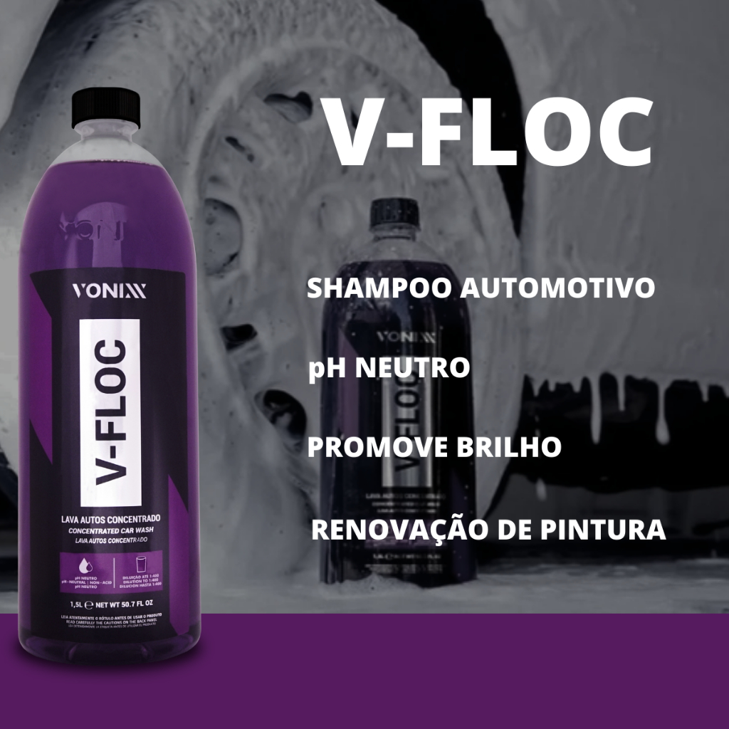 Este anúncio contém: 1 (um) Kit limpeza automotiva e interna 1500ml original da marca Vonixx. Conteúdo da embalagem: 1 (um) Limpador bactericida Sintra Pro 1500ml; 1 (um) Shampoo lava autos concentrado V-Floc 1500ml. Código do Fabricante: 7898511030592/7898511027097; Código Universal: 7898511032015/7898511032886. Sintra Pro, sobre o produto: Sintra pro limpeza interna é um multilimpador flotador bactericida de pH balanceado e ultra concentrado, indicado para limpeza de painéis, laterais e cantos de portas, bancadas de couro, carpetes e estofados. Promove alto poder de remoção de manchas de gordura e sujeiras diversas, além de eliminar microrganismos causadores de doenças no interior do veículo. A baixa espumação o torna ideal para ser usado em extratoras, eliminando as sujidades do interior do veículo e deixando-o limpo novamente. SINTRA PRO diminui maus odores no interior do veículo, tornando-o mais saudável e livre de impurezas. Sintra Pro, modo de usar: Em painéis, laterais e cantos de portas e bancos de couro: Diluir o produto na proporção conforme indicação; Com o auxílio de um pulverizador, aplicar a solução na área a ser limpa; Utilizar pincel, escova macia ou aplicador de espuma e realizar movimentos circulares até observar o desprendimento total da sujeira; Remover o excesso com auxílio de toalha de microfibra úmida. Em carpetes, estofados e tecidos: Diluir o produto na proporção conforme indicação; Com o auxílio de um pulverizador, aplicar a solução na área a ser limpa; Utilizar escova macia ou aplicador de espuma e realizar movimentos circulares até observar o desprendimento total da sujeira; Utilizar aspirador específico para remoção de água e aspirar toda a sujeira. Aguarde secar completamente. Observação: Caso utilize extratora ou tornador, realize diluição conforme o recomendado. V-Floc, sobre o produto: É um lava autos de alta performance e de pH neutro. Sua fórmula contém agentes condicionadores e tensoativos especiais que proporcionam uma lavagem suave e eficiente. V-FLOC tem alto grau de lubrificação, promovendo redução significativa do coeficiente de atrito, proporcionando um melhor deslize da luva de microfibra e reduzindo de forma efetiva as chances de micro-riscos na pintura. V-FLOC também promove brilho e aspecto de renovação da pintura. Rendimento 500ml: Até 200 litros de solução. V-Floc, modo de usar: Realizar a pré-lavagem do veículo para retirada do excesso de sujeira; Diluir aproximadamente 10ml de V-FLOC em 4 litros de água; Recomendamos ajustar a quantidade de produto de acordo com o nível de sujeira; Iniciar a lavagem com o auxílio de Luva de Microfibra, sempre começando pela parte superior do veículo; Mergulhar a luva na solução e esfregar suavemente, até completar todo o veículo; Enxaguar em seguida até a retirada de todo o produto; Recomendamos o uso da Toalha de Secagem para finalizar. Dúvidas frequentes: 1 - Trabalhamos apenas com produtos novos, e com garantia; 2 - Produto a pronta entrega; 3 - Seus produtos serão enviados em até 24 horas úteis após a confirmação do pagamento. Sobre a empresa: Somos uma Auto Peças fundada em 1980, atuamos no mercado varejista de peças e acessórios, tendo como principais clientes oficinas mecânicas e consumidor final. Não achou o que procura? Ficou com alguma dúvida sobre o produto? Fale conosco através do campo de perguntas.