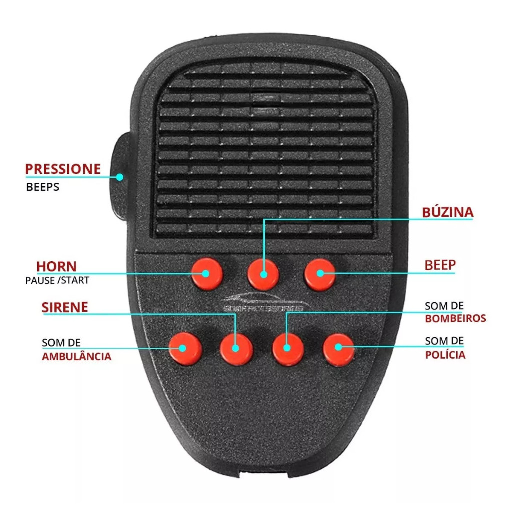 Sirene de Alarme Multifuncional Guarda Escola Empresas 120dB 12V e Corneta Alto Falante (ESCOLHER MODELO) Sao 2 modelos, KIT Sirene de alarme Multifuncional ou Apenas a Corneta(Alto Falante), favor escolher modelo A Sirene de Alarme Multifuncional é um dispositivo essencial para garantir a segurança e proteção da sua casa, escritório, loja ou qualquer outro ambiente. Com suas diversas funções e alto desempenho, ela proporciona tranquilidade e alerta em caso de emergências. Além de seu uso profissional, as sirenes também desempenham um papel importante ao fornecer um som característico aos veículos. Esta sirene em particular foi projetada para proporcionar um destaque sonoro excepcional. Com uma potência de 20W, uma pressão sonora de 120dB e uma tensão de operação de 12V, ela garante um som potente e claro. Possui sete diferentes tons, permitindo uma variedade de opções para personalizar o som de acordo com suas preferências. Um recurso adicional é o microfone integrado, que possibilita a amplificação da voz para o exterior do veículo, facilitando a comunicação em situações específicas. - Tons: Bombeiro, Polícia, Alarme Automotivo, Interferência, Ambulância, Sinal Decrescente e Alarme Residencial; Dimensões: Cabo: 2,5 metros Microfone: 9x5 (AxL) Sirene: 14x12cm (LxA) Especificações: - Tipo: Corneta - Alarme: 7 opções - Pressão sonora: 120dB - Tensão: 12V - Microfone: Integrado - Instalação: Suporte - Aplicação: Multiuso Itens inclusos: - 1 Sirene tipo corneta - 1 Controle/Microfone - 1 Kit para instalação - 1 Manual do usuário