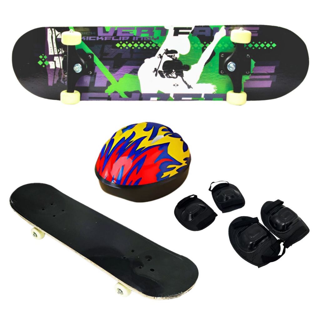 Skate com Acessórios - Bolsa para Transporte, Joelheira, Cotoveleira, Capacete Este skate completo é ideal para quem busca praticidade, segurança e estilo. Com design moderno e compacto, o skate vem acompanhado de todos os acessórios essenciais para garantir proteção durante a prática: bolsa para transporte, joelheira, cotoveleira e capacete. Suporta até 40kg, sendo perfeito para iniciantes e skatistas mais leves. É o presente perfeito para o Natal! Com todos os itens essenciais para garantir diversão e segurança, é a escolha ideal para quem está começando a andar de skate ou para quem adora praticar com estilo. Surpreenda alguém especial com um presente que combina praticidade, proteção e muita diversão! Características: Tamanho do Skate: 78cm x 20cm, oferecendo o equilíbrio ideal entre agilidade e estabilidade. Acessórios inclusos: Bolsa para transporte, joelheira, cotoveleira e capacete, todos projetados para proporcionar mais segurança durante o uso. Capacidade de peso: Aguenta até 40kg, ideal para iniciantes e jovens skatistas. Com esse kit, você pode andar com mais confiança e transportar seu skate com facilidade. Perfeito para quem quer começar no mundo do skate com o pé direito, sem deixar a segurança de lado!