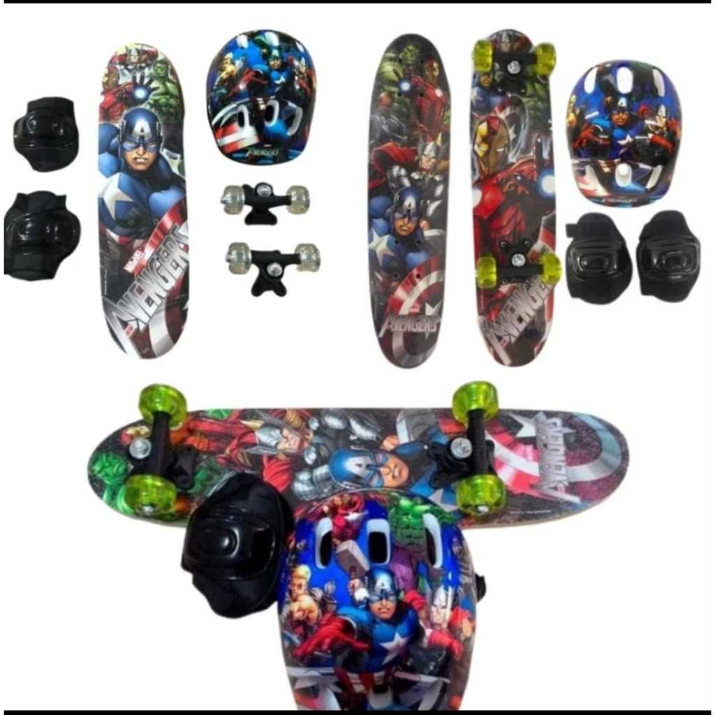 Skate Infantil Radical Antiderrapante Homem Aranha Com Kit Segurança Menino e Menina 60CM Promoção