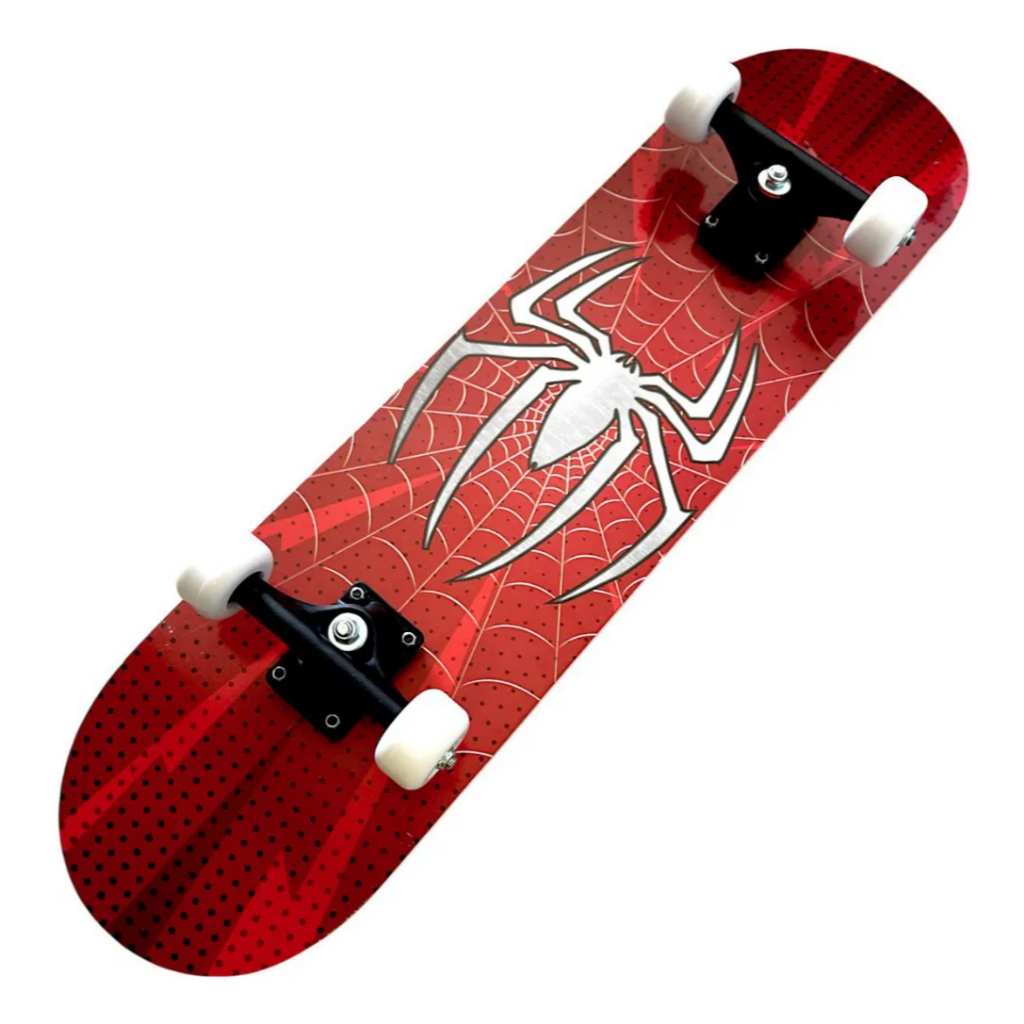 Skate Iniciante Completo Esqueite Desenho Skat Spider Aranha Branca Aço
