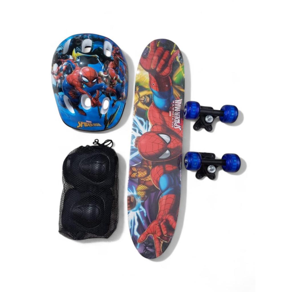 Skate Radical Infantil Personagens Com Kit Segurança Menino e Menina