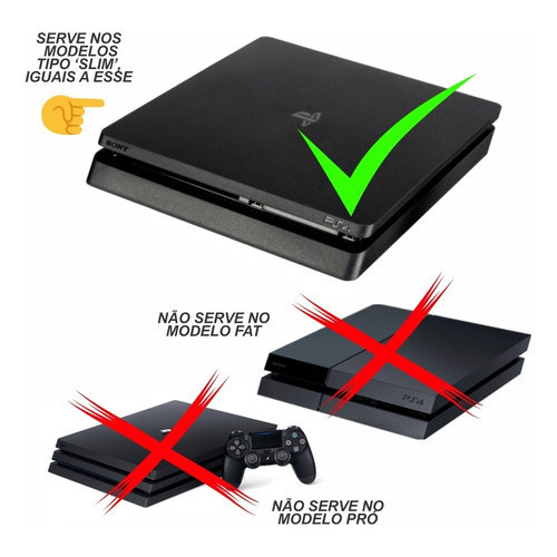 Produto personalizado de fabricação própria. NÃO é original. O nome do modelo é utilizado somente para indicar compatibilidade. COM O DIFERENCIAL DE SER UM ADESIVO COM RECORTE ELETRÔNICO, seu PS4 ficará mais bonito e diferente de todos os outros - que perguntarão a você como conseguiu um produto tão bonito e sofisticado. APENAS NÓS TEMOS ESTES MODELOS!!! Não perca essa oportunidade de personalizar seu PS4 com um produto diferenciado dos demais do mercado! Encaixe Perfeito !!! Cores Disponíveis: - somente os que estão nas fotos Compatível com: - PS4 "SLIM" Especificação Técnica: - Fabricado em adesivo de alta performance - Acabamento com recorte eletrônico - Maior Proteção para seu PS4 - Evita Riscos - Proporciona Estilo Personalizado - Verso Autocolante - Ótima Aderência e Durabilidade - Maior Praticidade na Instalação Conteúdo da Embalagem: - 01 Kit Completo de Adesivos Skin para o PS4 SLIM - 02 Kits de adesivos para 2 controles - 02 Emblemas Adesivos para você colar onde mais quiser! Importante: Garantia de 3 Meses. Valor Unitário. Imagens Meramente Ilustrativas. Recomendamos que a instalação seja feita por profissional especializado e não nos responsabilizamos pelo mau uso do produto. Aplicação: Aplique a seco, é bem fácil! Aplique devagar, UM POR UM, pacientemente. Comece a colagem da parte inferior para a superior (ou da direita para a esquerda). >