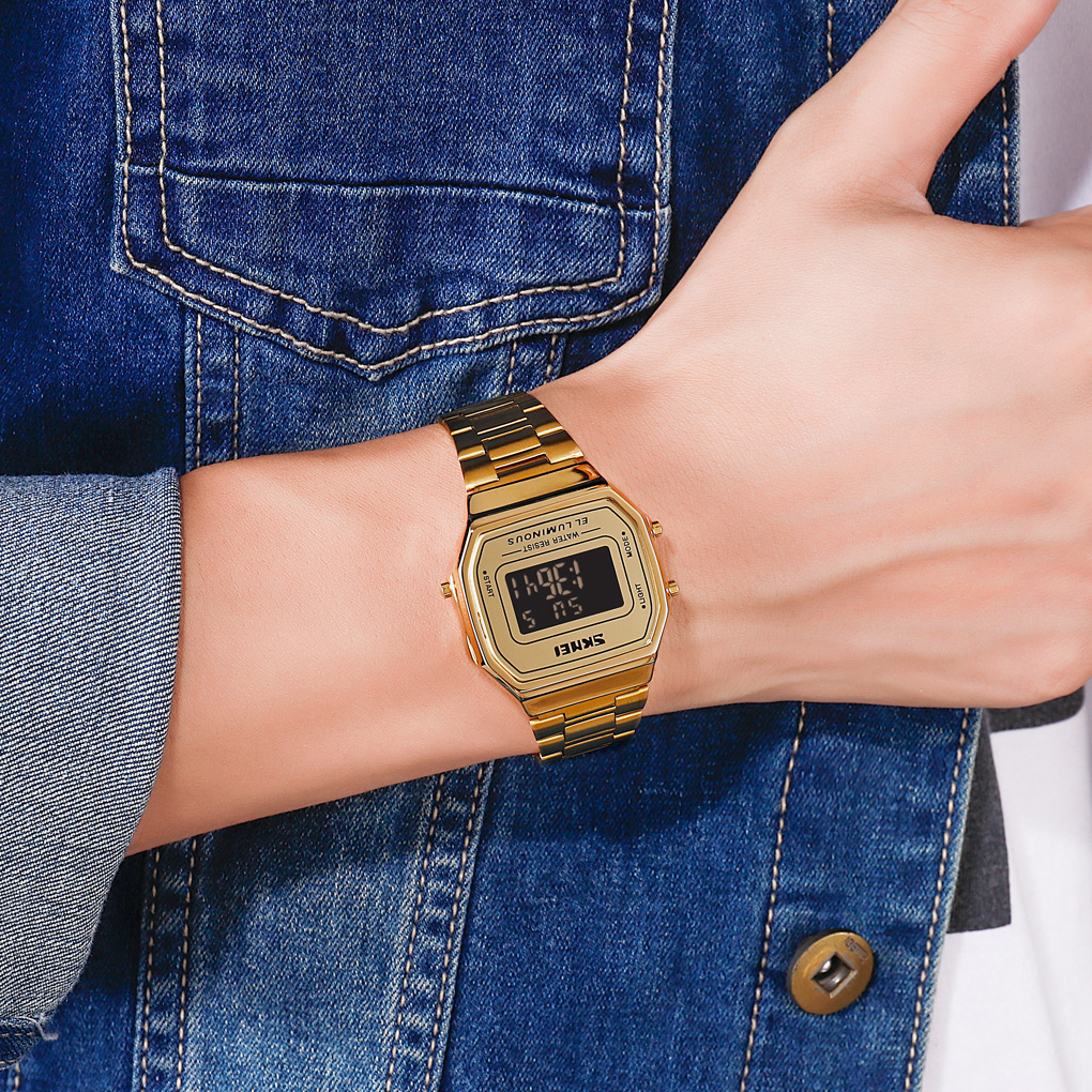 SKMEI Relógio De Pulso Digital Masculino De Aço Inoxidável De Luxo Cronômetro Casual De Alarme Feminino Vestido Eletrônico À Prova D'água