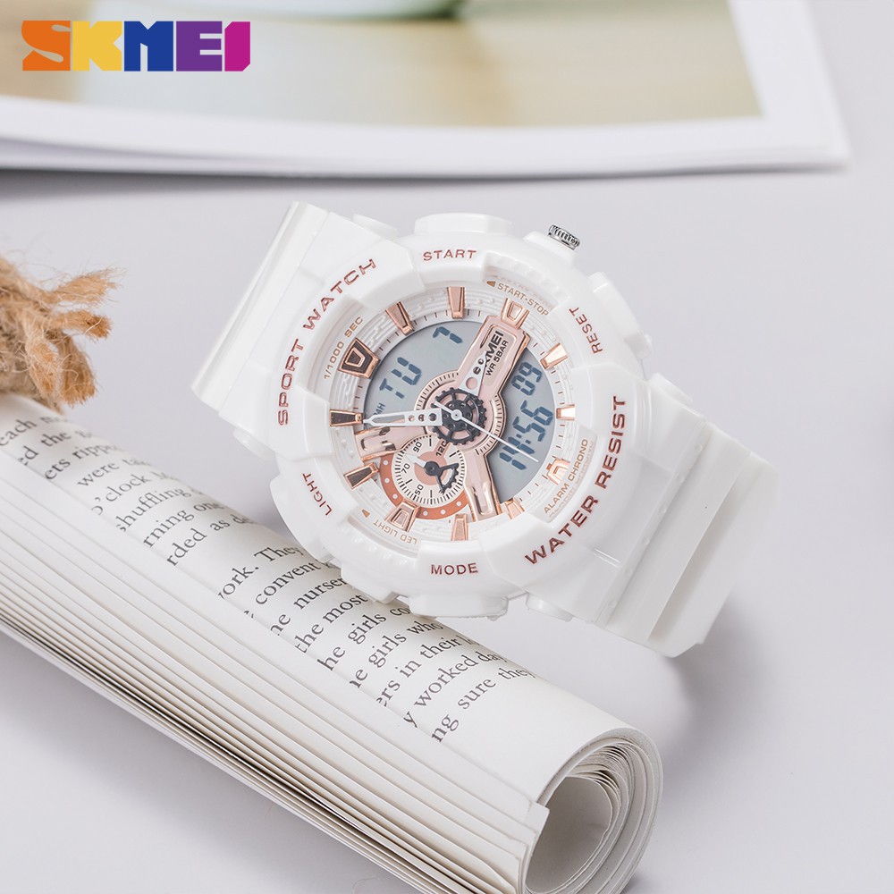 SKMEI Relógio esportivo feminino cronógrafo digital com visor duplo relógio feminino à prova d'água