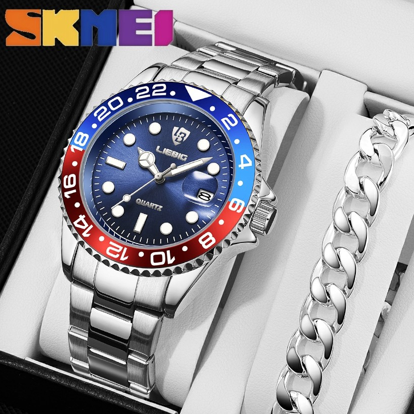 SKMEI X LIEBIG Relógio Masculino De Quartzo Em Aço Inoxidável À Prova D'água Com Pulseira Grátis L1098
