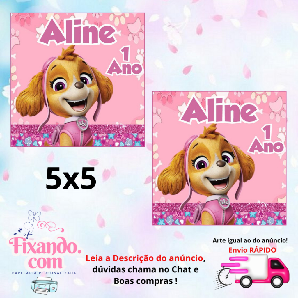 Tema: SKYE PATRULHA CANINA ✨PAPEL ADESIVO 115G ✨REDONDO TAMANHO 5X5 ✨ QUADRADO TAMANHO 5X5 ✨ TUBETE TAMANHO 7X3,5 OBSERVAÇÃO: Os adesivos NÃO são em 3D ✨ Personalizáveis com o nome e idade ✨ Papel adesivo com brilho e alta qualidade ✨Não alteramos, nem trocamos as medidas dos adesivos ✨Não vai Recortado IMPORTANTE: Após efetuar sua compra, enviar nome e idade; *** SE ATENTEM EM MANDAR OS NOMES E IDADE NO ATO DA COMPRA*** ***NÃO TRABALHAMOS COM PEDIDOS DE URGÊNCIA !!!***