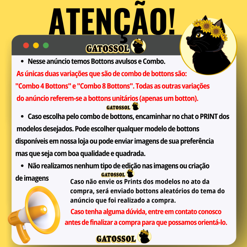 ESCOLHA SUA VERSÃO FAVORITA NA VARIAÇÃO E ADICIONE AO CARRINHO! 📦 Envio rápido: até 24h úteis! Neste anúncio, você encontra bottons individuais e combos. 👉 Atenção ao selecionar a variação correta! Apresentamos nossos bottons temáticos Ao optar pelo “COMBO 4 BOTTONS” ou “COMBO 8 BOTTONS”, você pode: Escolher qualquer imagem entre os bottons disponíveis na loja ou Enviar suas próprias imagens (desde que sejam quadradas e de boa qualidade). Após a compra, envie no chat o print dos modelos desejados ou as imagens personalizadas. Caso não sejam enviadas no momento da compra, os bottons serão enviados aleatoriamente dentro do tema Tomo-chan is a Girl. Confira os outros temas disponíveis na nossa loja e monte sua coleção completa! ESPECIFICAÇÕES TÉCNICAS Formato: redondo Tamanho: 4,5 cm Verso: plástico branco (polipropileno) Frente: papel fotográfico premium com filme brilhante Alfinete de ponta fina, firme e resistente