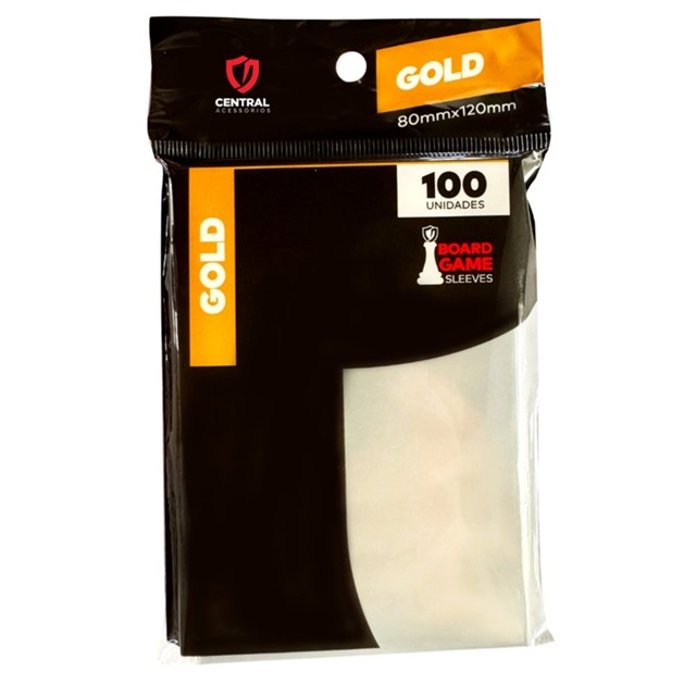 SLEEVE GOLD 80X120mm TRANSPARENTE CENTRAL 100UN BOARD GAMES PROTETOR CARTAS ACESSÓRIO JOGOS TCG OURO