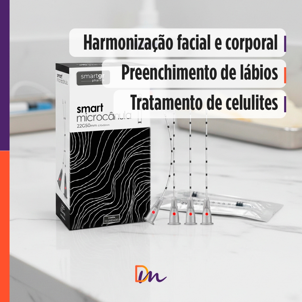 SMART MICROCÂNULA 22G X 50MM SMART GR Registro Anvisa n° 81382050025. A Smart Microcânula é um dispositivo de alta tecnologia, composto por um tubo de aço inoxidável que se conecta a seringas luer lock e slip. Projetado para injeções intra ou subdérmicas de ativos de maneira não traumática, a Smart Microcânula possui ponta arredondada e sem corte, permitindo uma aplicação segura e com trauma mínimo. As microcânulas Smart Gr incluem agulhas de pertuito para auxiliar no procedimento. INDICAÇÃO - Harmonização Facial e Corporal. - Preenchimento de lábios. - Tratamento de celulites. Indicado para: Preenchedores, Bioestimuladores, Bioplastia e ativos para mesoterapia. Incluindo: Ácido Hialurônico, Hidroxiapatita de Cálcio, Ácido L-Polilático e Lipolíticos - Cânulas de 22, 23 e 25 G x 5 mm são utilizadas para preenchimentos de viscosidade e concentração baixas a médias em áreas delicadas e de curta distância (sulco nasojulgal, região temporal e nariz). BENEFÍCIOS E DIFERENCIAIS - Maior segurança. - Adaptável a seringas. - Acompanha Agulha de pertuito. - Aplicação segura e com trauma mínimo. - Textura lisa: Proporciona uma aplicação mais suave. - Indicação de medida: Marcação de 10 em 10 centímetros para maior controle e posicionamento no momento do uso. - Flexibilidade: Permiti que diferentes áreas sejam tratadas com precisão e segurança, sem a necessidade de novas injeções. MODO DE USO - Uso profissional. Após afixada à seringa, a qual contém a substância utilizada pelo profissional responsável pelo procedimento, a Smart Microcânula deve ser injetada, liberando o fluído nas regiões tratadas. ADVERTENCIAS E PRECAUÇÕES - Evitar o contato com os olhos. - Manter fora do alcance das crianças. - Uso único. É proibida a reutilização, bem como seu descarte em lixo comum. - Não fazer o uso do produto caso tenha hipersensibilidade a algum dos componentes. ESPECIFICAÇÕES TECNICAS Marca: Smart Gr. Medida da Smart Microcânula: 22 G X 50 MM. ITEM INCLUSO 01- Caixa Com 10 Unidades Microcânula 22 G X 50 MM Smart Gr. FAQ DERMOMED 1. Acompanha as agulhas para pertuito? R: Sim, acompanha. 2. A Cânula 22 G X 50 mm pode ser utilizado para procedimento de Glúteo Maxx? R: Não, infelizmente não serve. É recomendado realizar a aplicação com a Cânula de 18g.