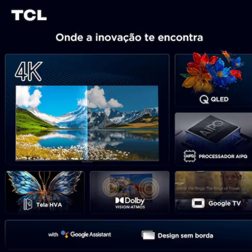 Smart TV 85” TCL 85P7K 4K QLED UHD 60Hz HDR10+ 60Hz Sistema Operacional Google TV
