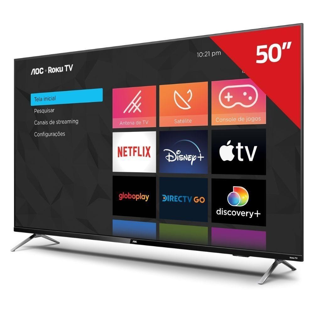 Smart TV AOC 50U7045/78G 4K UHD de 50" Roku TV HDR, Design sem bordas e Dolby Atmos