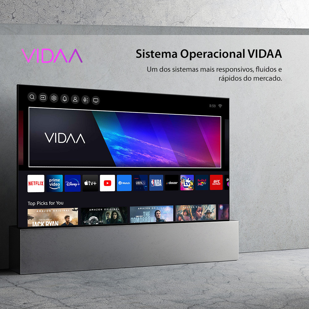 Smart TV DLED 50 4K Toshiba VIDAA 3HDMI 2USB Wi-Fi Ao procurar por uma Smart TV de alta qualidade, os consumidores muitas vezes se deparam com opções confusas e complicadas, tornando difícil encontrar o equilíbrio entre desempenho excepcional e facilidade de uso. Com o Smart TV 50 Toshiba DLED 4K, você terá uma solução definitiva para esses problemas. A marca Toshiba é sinônimo de qualidade e confiabilidade, e esta Smart TV não é exceção. Com A Smart TV de 50 polegadas DLED 4K, você desfrutará de imagens excepcionais, com detalhes nítidos e cores vibrantes. Cada cena ganha vida, oferecendo uma experiência visual imersiva que vai além dos pixels. O sistema operacional VIDAA é intuitivo e altamente personalizável, permitindo que você navegue facilmente pelos seus programas, filmes e aplicativos favoritos. A interface rápida e responsiva torna a experiência de uso ainda mais agradável. Para um som envolvente, a tecnologia Dolby Áudio garante uma qualidade de áudio excepcional. Cada som é reproduzido com precisão, proporcionando uma experiência auditiva imersiva que complementa perfeitamente a qualidade de imagem impressionante. Com um controle remoto inteligente, você pode acessar facilmente serviços de streaming populares, como Netflix, YouTube e Amazon Prime, com apenas alguns cliques ou comandos de voz. Além disso, as múltiplas entradas HDMI e AV permitem conectar facilmente seus dispositivos externos para uma experiência de entretenimento completa. Como líder no mercado de Smart TVs, a Toshiba tem um histórico comprovado de oferecer produtos de alta qualidade que superam as expectativas dos consumidores. Com o Smart TV 50 Toshiba DLED 4K, você está escolhendo não apenas um produto premium, mas também a expertise e o compromisso de uma marca que há décadas está na vanguarda da inovação tecnológica. Garanta uma experiência de entretenimento incomparável com a confiabilidade e o desempenho incomparáveis da Toshiba! Ficha Técnica Marca: Toshiba Modelo: Smart TV DLED 50 4K Toshiba VIDAA 3HDMI 2USB Wi-Fi Wi-fi: Sim Smart: Sim Tensão: Bivolt Bluetooth: Sim, versão 5.0 Tamanho da Tela: 50 Polegadas Formato da Tela: 16:09 Resolução de Vídeo: 4K Tecnologia do Painel: DLED Velocidade do Painel: 60Hz Brilho: 300cd/m2 Ângulo de Visão: H: 178 V: 178 Tempo de Resposta do Painel: 8ms Contraste: 5000:1 HDR: HDR10 Modo de Áudio: Dolby Áudio Sistema Operacional: VIDAA Aplicativos Pré Instalados: Netflix, Youtube, Prime Vídeo, Disney+, Apple TV+, Loja de APP Comando de Voz: Sim Espelhamento de Tela: Sim Navegador: Sim Suporte VESA: 200 x 400 RGB/WRGB: RGB Consumo Médio: 90W, Stand BY 0.5W Eficiência Energética: Procel Nível A Entradas: 1x entrada P2; 2x HDMI 2.0; 1x HDMI ARC; 2x USB 2.0; 1x Óptica; 1x Lan Ethernet; 1x Sintonizador Dimensões sem Base (LxAxC): 111,9 x 64,9 x 8,1cm Dimensões com Base (LxAxC): 111,9 x 69,2 x 27,4cm Peso: 8,8Kg Certificado Anatel: 02288-22-05520 Certificado Inmetro: 002256/2022 Garantia: 1 Ano Imagens meramente ilustrativas.