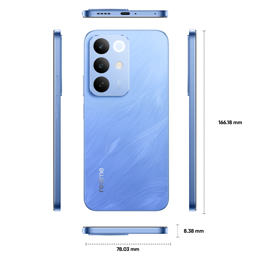 **ATENÇÃO POR MOTIVOS DE LOGISTICA NÃO ESTAMOS ENVIANDO PARA OS ESTADOS DE ALAGOAS E PERNAMBUCO** O realme C85 é um smartphone Android de bom nível, ótimo para fotos, que pode satisfazer até o mais exigente dos usuários. Tem uma enorme tela Touchscreen de 6.8 polegadas com uma resolução de 2344x1080 pixel. Sobre as características deste realme C85 na verdade não falta nada. Começando pelo LTE 4G que permite a transferência de dados e excelente navegação na internet, além de conectividade Wi-fi e GPS. Tem também leitor multimídia, videoconferência e bluetooth. Enfatizamos a boa memória interna com a possibilidade de expansão. O realme C85 é um produto com poucos concorrentes em termos de multimídia graças à câmera de 50 megapixels que permite ao realme C85 tirar fotos fantásticas com uma resolução de 4096x3072 pixels e gravar vídeos em alta definição (Full HD) com uma resolução de 1920x1080 pixels. Muito fino, 8.1 milímetros, o que torna o realme C85 realmente interessante. Ficha técnica; REDE Tecnologia: 4G CORPO Dimensões: 164,4 x 78 x 8,1 mm Peso: 205g Tela Tipo: LCD, 120Hz Tamanho: 6,8 polegadas Resolução: 1080 x 2344 pixels PLATAFORMA Android 15, Realme UI 6.0 Chipset: Qualcomm Snapdragon 685 (6 nm) CPU: Octa-Core; 4 núcleos Kryo Gold (A73) com clock de até 2,8 GHz, 4 núcleos Kryo Silver (A53) com clock de até 1,9 GHz. GPU: Adreno™ 610 a 1,26 GHz. MEMÓRIA 256GB com 8GB de RAM CÂMERA PRINCIPAL 50 MP (grande angular) Características: Flash LED, HDR, panorama Vídeo: 1080p a 30/120 fps CÂMERA DE SELFIE 8 MP (grande angular) Características: Panorama Vídeo: 1080p a 30fps COMUNICAÇÕES WLAN: Wi-Fi 802.11 a/b/g/n/ac, banda dupla Bluetooth: 5.0, A2DP, LE Posicionamento: GPS, GALILEO, GLONASS, QZSS, BDS NFC: Sim USB: USB Tipo-C 2.0, OTG Conector de 3,5 mm: Não CARACTERÍSTICAS Sensores: Impressão digital, acelerômetro, proximidade, bússola BATERIA Tipo: Si/C Li-Ion 7000 mAh CONTEUDO DA EMBALAGEM : -Smartphone Realme C85 4G -Carregador 45W -Capa protetora Cabo de carregamento (Cabo Usb Tipo C) -Ferramenta ejetora de chip Manual