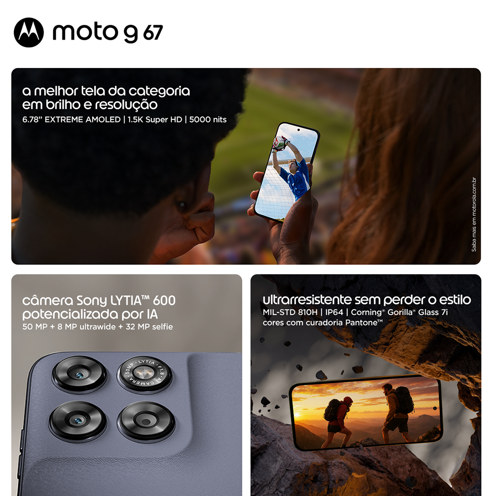 Lançamento: Smartphone Moto G67 128GB 5G | Design Ultrarresistente | Câmera Sony LYTIA™ 600 com IA | Bateria de 5200 mAh e carregamento rápido