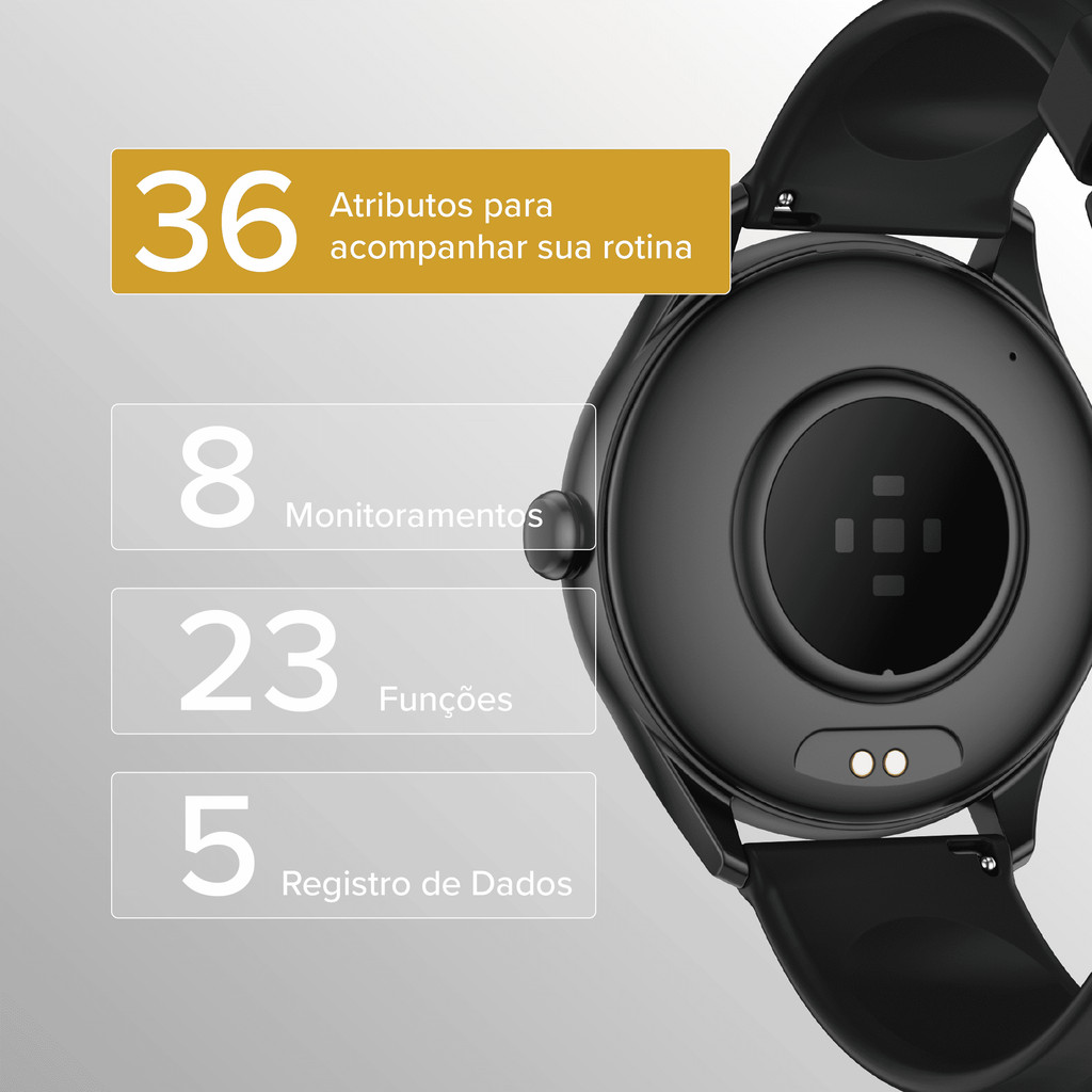 O Smartwatch Track R200 da i2GO combina alta tecnologia e estilo para o dia a dia. Com uma bateria de 250 mAh, ele oferece até 5 dias no modo Standard ou 3 dias no modo Full, garantindo mais autonomia para o seu dia a dia. A tela IPS de 1,39" garante cores vibrantes e alta resolução, perfeita para qualquer ambiente. Com ele, você pode realizar chamadas telefônicas diretamente do pulso e armazenar até 10 contatos. O Track R200 conta ainda com 36 atributos de acompanhamento: Como frequência cardíaca, qualidade do sono e calorias queimadas, além de funções como cronômetro, controle de música e registros esportivos, para otimizar seu desempenho e bem-estar no dia a dia, e 103 modos esportivos, todos com registros detalhados para acompanhar seu desempenho. A segurança está garantida com a função S.O.S., Que em casos de emergência realiza uma chamada para um número pré-registrado ao pressionar um botão. Resistente à poeira e água, com classificação IP67, oferece uma melhor proteção para o uso diário. Personalize seu estilo com 6 watchfaces no relógio, incluindo 1 customizável, e mais de 150 opções no app Dafit, que também oferece ferramentas completas de monitoramento e configuração. Além disso, receba notificações de apps como WhatsApp, Instagram, e-mails e muito mais diretamente no pulso. O Track R200 é o parceiro ideal para uma rotina conectada, saudável e funcional. O Smartwatch Track R200 da i2GO é o equilíbrio perfeito entre tecnologia e praticidade. Com bateria de até 5 dias, tela IPS de 1,39", mais de 100 modos esportivos e 36 funcionalidades, registra atividades e permite realizar chamadas diretamente do pulso. Resistente à água e poeira (IP67), é o companheiro ideal para sua rotina ativa e conectada. Bateria de longa duração: Até 5 dias no modo Standard e 3 dias no modo Full. Com capacidade de 250 mAh, garantindo mais autonomia para o seu dia a dia. Tela IPS de 1,39 polegadas: Alta resolução com cores vibrantes, ideal para visualização clara de notificações, métricas e configurações, mesmo sob luz solar intensa. Chamadas telefônicas no pulso: Realize e atenda chamadas diretamente no smartwatch. Possibilidade de armazenar até 8 contatos no relógio para acesso rápido. 36 atributos de acompanhamento: Como frequência cardíaca, qualidade do sono e calorias queimadas, além de funções como cronômetro, controle de música e registros esportivos, para otimizar seu desempenho e bem-estar no dia a dia. Com 103 modos esportivos: Atende a todos os perfis de esportistas, dos iniciantes aos avançados, acompanhando diversas atividades. Inclui registros detalhados de desempenho e um programa de treinamento no app, com vídeos explicativos e séries guiadas Função S.O.S.: Ao pressionar um botão, realiza uma chamada de emergência para o número pré-registrado, garantindo mais segurança. Classificação IP67: Resistente à poeira e água, perfeito para uso no dia a dia ou em atividades externas. Watchfaces personalizáveis: São 6 watchfaces armazenadas no relógio, incluindo uma totalmente customizável. Acesse mais de 150 opções exclusivas pelo aplicativo Dafit para personalizar ao seu estilo. Notificações de aplicativos: Receba alertas de WhatsApp, Instagram, Facebook, e-mails e muito mais diretamente no pulso. App Dafit: Personalize seu smartwatch, monitore métricas detalhadas de saúde e atividades e tenha acesso a mais de 150 watchfaces. O app torna a experiência do Track R200 completa. Especificações Técnicas: Material: Envoltório de silicone + ABS (com pintura a óleo de metal). Impermeável: IP67 (Não recomendado utilizar para nadar e praticar esportes aquáticos). Tela IPS de 1,39 polegadas. Bateria: 250 mAh. Corrente de carregamento: 5V/1A. Versão BT: Bluetooth 5.4. Resolução da tela: 240*240. Distância BT sem fio: 10M. Linguagem: Inglês, alemão, italiano, francês, espanhol, japonês, russo, português. Pulseira de relógio: A alça pode ser removível e substituível. APP: Dafit. Acessórios: 1 cabo de carregamento magnético. *Garantia i2GO: Esse produto está garantido contra defeitos de fabricação por 1 ano, registre seu produto em nosso site.