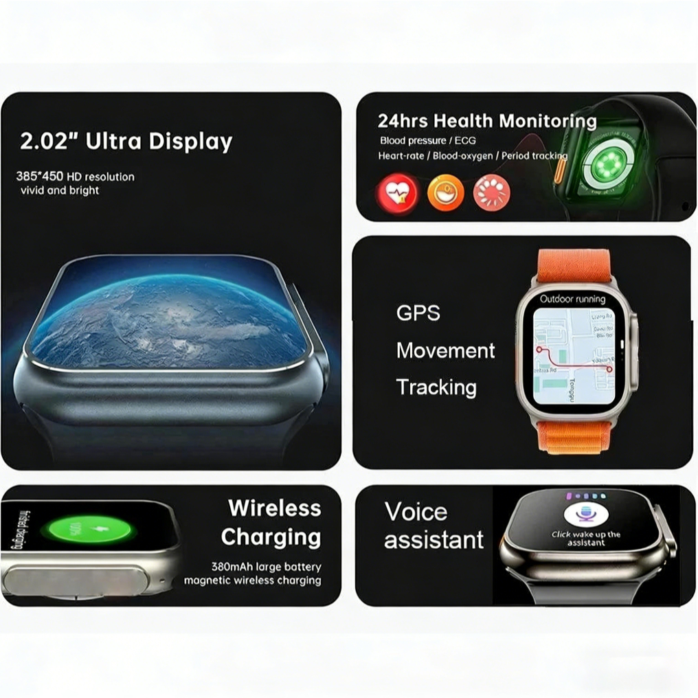 Smartwatch T800ULTRA3MAX- Tecnologia e Estilo na Palma da Sua Mão Visão Geral O smartwatch T800ULTRA3MAX possui um design simples e elegante, integrando-se perfeitamente a diversos ambientes para criar uma atmosfera ideal e exibir seu bom gosto. Principais Características Tela e Design Tela de 2,01 polegadas: A resolução de 240 x 240 pixels proporciona uma experiência visual nítida e clara. Utilizando a tecnologia de vidro 3D de alta curvatura, cria uma experiência visual imersiva. Coroa Giratória: Operação intuitiva e prática. Personalização Diversas Opções de Mostradores: Uma variedade de estilos disponíveis para combinar com seus diferentes humores e looks do dia a dia. Mostradores Personalizados: Crie mostradores exclusivos usando suas próprias fotos para personalizar seu relógio. Desempenho e Bateria Chip Potente (ZK8918C): Oferece desempenho superior. Bateria de Longa Duração: A bateria integrada de 150mAh proporciona até 5 a 7 dias de duração (dependendo do uso). Conectividade e Comunicação Chamadas via Bluetooth: Nunca perca uma chamada importante! Atenda e faça chamadas diretamente do seu relógio e desfrute de áudio de alta fidelidade. Esta é a melhor opção mesmo quando suas mãos estão ocupadas. Bluetooth 5.2: Garante uma conexão estável e rápida com seu smartphone, permitindo a sincronização de notificações, músicas e muito mais. Saúde e Bem-estar Biomonitoramento: Monitora a frequência cardíaca, a saturação de oxigênio no sangue e os padrões de sono para ajudar você a manter um estilo de vida saudável. Monitoramento de Atividades: Monitora exercícios (corrida, ciclismo, caminhada) e outras atividades físicas para incentivar um estilo de vida ativo e saudável. Especificações Técnicas Tamanho da Tela: 2,01 polegadas Resolução: 240 x 240 pixels Capacidade da Bateria: 150 mAh Chip: ZK8918C Conectividade: Bluetooth 5.2 Método de Carregamento: Carregamento sem fio Sistemas Compatíveis: Android 5.0+ e iOS 9.0+ Aplicativo: LaxasFit Materiais Principais Cores Disponíveis: Preto e Prata Caixa: Liga de Zinco (Durável) Pulseira: Silicone (Respirável e Confortável) Resumo O smartwatch T800ULTRA3MAX é a escolha ideal. Seja para se manter conectado ou monitorar sua saúde diária, o T800ULTRA3MAX lida com tudo com facilidade.