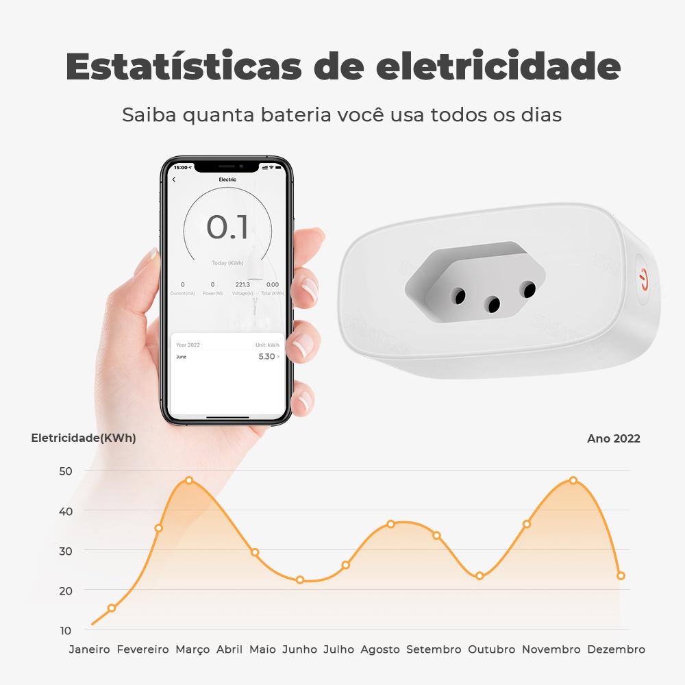SMATRUL 16A Padrão Brasil Tuya Wifi Inteligente Plug Adapter Tomada Power Monitor Temporizador Vida APP Google Casa Alexa