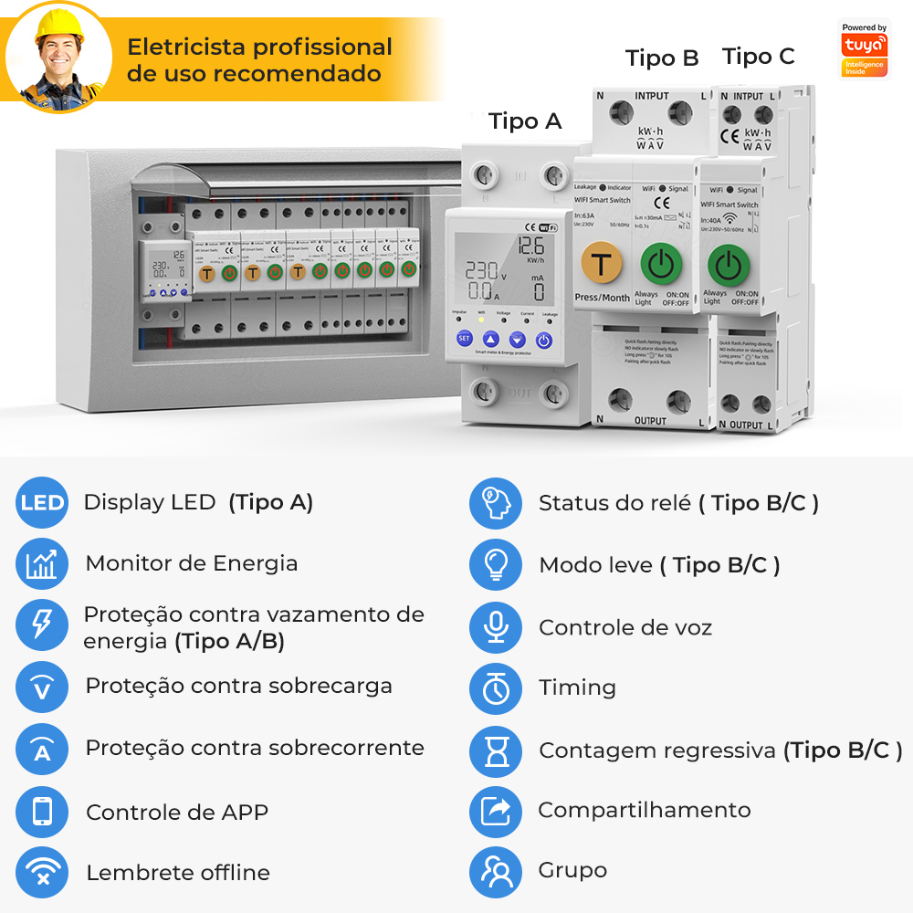 Aviso】 Tensão nominal: 230v; Frequência: 50hz/60hz Tensão de Faixa de Trabalho: 80v-400v (Tipo A); 120-280v (Tipo B, C) O dispositivo é um produto de alta potência, por favor, instale-o por um eletricista profissional. Aparelho apenas suporta rede sem fio 2,4g, não 5g Ponto de Venda de Venda --[Cenários Aplicáveis] O Disjuntor de Circuito Wifi Smart Recloser, Pode ser Amplamente Usado em Casas, Fábricas, Dormitórios Estudantes, Farmland, Engenharia Municipal, Controle Remoto Inteligente de Bombas de Água, Aquecedores de Água, Equipamentos de Aquecimento ao Piso, Etc. Ligar/desligar por telefone a qualquer hora, em qualquer lugar. Relatórios de energia para rastrear adequadamente o uso de energia em sua casa. -- Eletricidade Uso Estatísticas de uso】Ver relatórios de energia para rastrear adequadamente o uso de energia em sua casa. Consumir A maioria das plantas para economizar em brocas de energia e eletricidade.Quais eletrodomésticos consumem as mais energias e fazem plantas para economizar em brocas de energia e eletricidade. Corrente de Vazamento, E Total Kwh Através do aplicativo móvel] Visualizar Corrente, Voltagem, Corrente de Vazamento, E Total Kwh Através do aplicativo móvel. Dispositivos suportados para facilitar o controle de voz】 O plugue inteligente funciona com Alexa, Google Assistente, Tmall Genie, Yandex para fácil controle de voz. Ligar e desligar o dispositivo conectado ao tempo especificado. Conheça a função de contagem regressiva e desligue o dispositivo. (Seção B E C Suporte) A corrente de vazamento pode ser definida no aplicativo. Suporte Tipo B) Proteção contra vazamento】Vai desencadear automaticamente após vazamento para proteger sua segurança. O valor do vazamento do vazamento pode ser ajustado para 30ma-100ma. Suporte Tipo B) Proteção contra sobretensão】30v-100v (Ajustável) (Padrão: 30) Proteção contra sobrecorrente】1a-63a (Ajustável) (Padrão: 30a) Você pode desligar ou ligar dispositivos de grupo juntos, o que é mais conveniente Será Offline] Quando o Dispositivo estiver Offline, --[Função Offline] Quando o Dispositivo estiver Offline, O Aplicativo lembrará o Dispositivo a Ser Offline após 30 Minutos --[Opção De luz de fundo] Você pode definir o Status da luz de fundo para garantir que a comutação e desligar a luz durante o descanso não afetará o descanso (Suporte para modelos B e C) Não se preocupe com a desligamento, --[Função de memória desligada da energia] Não se preocupe com a desligamento de energia, o dispositivo lembrará o último estado após a energia novamente. (Seção B E C Suporte) Especificação: Tensão Nominal de 230v 1. Tensão de entrada de 80-400v (tipo A), 120v-280v (tipo B, tipo C) 50/60hz 2. Corrente Máxima: 63a (Tipo A, B), 40a (Tipo C) 3. Precisão da medição de tensão: 2% (não excedendo 2% da faixa Total) Tensão de isolamento nominal de 1000 v Temperatura de trabalho de temperatura de trabalho: -30°C-70°C Parâmetros de embalagem de produtos únicos】 Peso líquido: 0,1229 kg (tipo A), 0,155 kg (tipo A), 0,229 kg (tipo B), 0,124 kg (tipo C) Peso Bruto: 0,17kg (Tipo A), 0,245kg (Tipo B), 0,14kg (Tipo C) Quantidade: 1pçs Tamanho da Embalagem: 87*40*40mm (Tipo A), 103*78*40mm (Tipo B), 103*78*40mm (Tipo C)