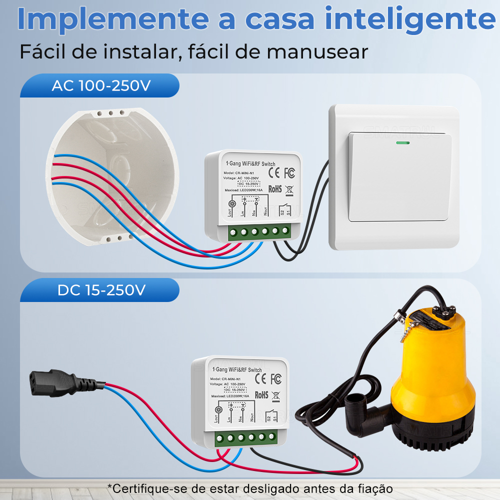 Ponto de venda do ponto de venda -- 2 Métodos de Fonte de Alimentação】Suporte A Ac E Dc Dois Métodos de Fonte de Alimentação, Que Pode Conhecer As Necessidades Da maioria dos aparelhos elétricos do Mercado. -- Wifi+433】Pode Ser Controlado pelo aplicativo Tuya, alto-falante de voz, interruptor sem fio e controle remoto, que é mais conveniente. Também pode ser desconectado a rede doméstica se a rede doméstica estiver desconectada, o controle remoto também pode controlar o dispositivo. -- -- Wifi+Bluetooth Modo Duplo】Conecte-se ao mais rápido da rede. 2x conexão mais rápida que apenas Wi-Fi -- Mini Body】nossos É Menor, Mais Conveniente E Fácil de Instalar, Podemos Colocá-lo Diretamente Na Caixa Inferior Interruptor. Não precisa subir escadas para instalar o controlador -- --[Dois Métodos de Conexão] O Controlador É Conectado Apenas à Linha N E A Linha, Não Ao Interruptor. Interruptor Inteligente Diy Funciona Com Seu Antigo 2 Interruptores de Controle de Gang.Este Interruptor Inteligente Diy Funciona Com Seu Antigo 2 Interruptores de Controle de Gang. Em Particular, você ainda pode controlar manualmente o interruptor antigo após a instalação. Compatível totalmente com Amazon Alexa E Google Home/Tmall Genie/Yandex. --[Função De estacionamento] Defina o tempo para ligar as luzes, defina o tempo de cozimento... --[Função De agrupamento] Você pode desligar ou ligar dispositivos de agrupamento juntos, o que é mais conveniente Material do retardador de chama] Mais seguro de usar --[3 Tipos de Status Reiniciado] Padrão Ou Desligado, Ou Status de Memória, Você Não Tem que se preocupar com o Status da Luz Quando Sair Adequado para a maioria dos dispositivos domésticos O Aparelho É Offline,O Aparelho Para Se Ser --[Função Offline] Quando O Aparelho É Offline,O Aplicativo Lembre-se O Aparelho Para Ser Offline Após 30 Minutos Parâmetros do controlador de controlador de motorista Tensão de entrada de saída: Ac (100-240v 50/60hz), Dc (15-250v) Corrente máxima de carga: 16a Padrão Wifi padrão: 2,4 GHz 802,11 B/G/N Nome do aplicativo de aplicação de Tuya: Tuya Smart (vida inteligente) Tamanho da caixa: 40*40*22mm Parâmetros Remotos de Parâmetros Remotos de Parâmetros Remotos 1. Frequência de trabalho: 433,92MHz 2. Método de modulação de perguntar 3. Tamanho da peça: 110*37*14(Mm) 4. Bateria 12v 23a 1pc (Bateria Não Inclusa) Parâmetros de embalagem de produtos únicos】 Peso líquido: 0,03 kg Peso Bruto: 0,038kg Quantidade: 1pcs Tamanho da Embalagem: 48*46*27mm
