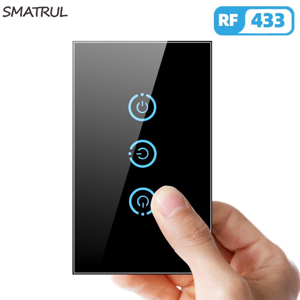 SMATRUL | Interruptor de Toque Sem Fio Rf 433 Mhz em Vidro Temperado