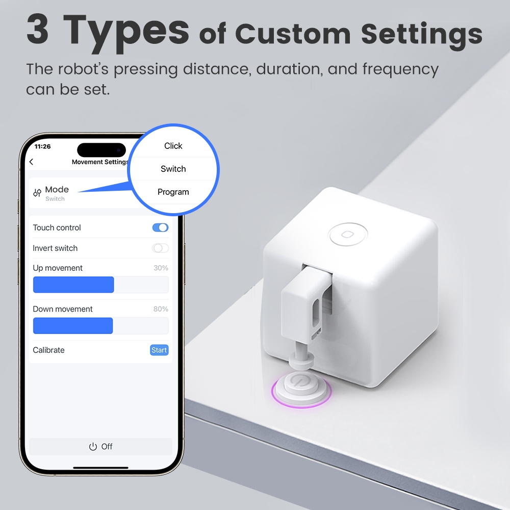 Função de função de: O controle inteligente de seus aparelhos domésticos tradicionais】 O Fingerbot é compatível com uma variedade de botões e interruptores (exceto botões de tela sensível ao toque). Com os adesivos adicionais incluídos, pode ser facilmente colado em qualquer superfície e transformado em seus aparelhos domésticos antigos. Pode ser usado para trocar computadores, TVs, robôs de piso, portas de garagem, interruptores de parede, etc. -- Botão de toque】O dispositivo recém- atualizado Fingerbot Plus é projetado com um botão de toque, que pode controlar facilmente o interruptor do braço robótico com apenas um toque do dedo e transformar interruptores e botões tradicionais em Empurrador de botão inteligente de robô através do empurrador de botão robô. O hub Tuya BLE/ZigBee traz mais funções】 Com o hub Tuya BLE/ZigBee, você pode controlar remotamente o botão do dedo de qualquer lugar e permitir o controle de voz. Assistente Alexa e Google perfeitamente compatível com Alexa e Google Assistente. A função de tempo ainda requer uma pista de tempo BLE/ZigBee. Entre em contato com o atendimento ao cliente) Leva apenas 5 segundos para colar ao lado do interruptor ou botão de balanço e colar com um adesivo 3M. Não há necessidade de substituir, não há necessidade de substituir, nenhuma ferramenta necessária. -- Economia de energia】 O robô de dedo de segunda geração recém atualizado é alimentado por baterias CR2 substituíveis, que podem durar até 6 meses (as baterias estão incluídas). O controle de alcance próximo】 A distância máxima de controle Bluetooth é de cerca de 30 metros. Você pode controlar o robô de dedo Bluetooth através do APP dentro de 30 metros sem rede. Controle de longo alcance】Mais de 30 metros. Por exemplo, se você quiser controlar o robô de dedo doméstico no escritório, outras cidades ou em viagens de negócios, você precisa adicionar um hub Bluetooth para trabalhar com o robô de dedo Bluetooth e controlá-lo remotamente Amplie o APP quando conectado à Internet (não limitado à distância) O robô de dedo pode definir um tempo de tempo no APP e ligar automaticamente em um certo tempo. Parâmetros: Nome do Dedo Inteligente: Fingerbot Inteligente Plus Material retardante de chama de PC Conexão de BLE 4.2 Fonte de alimentação da bateria CR2*1 Controle de APP de Tuya/Vida inteligente Tamanho e peso: 3,45*3,45*3,45 cm, 39 g Torque de produto de 2,0 kgf.cm Distância máxima de movimento: 12 mm Temperatura de trabalho: -10 ~ +45℃ Lista de embalagem: Robô de dedo*1 Bateria CR2*1 Adesivo 3M*1 Parâmetros de embalagem de produto únicos] Peso líquido da bateria: 29g (excluindo bateria) 39g (incluindo bateria) Peso bruto: 41g (excluindo bateria) 50g (incluindo bateria) Quantidade: 1 Tamanho da caixa: 5,6 * 5,6 * 4,5 cm