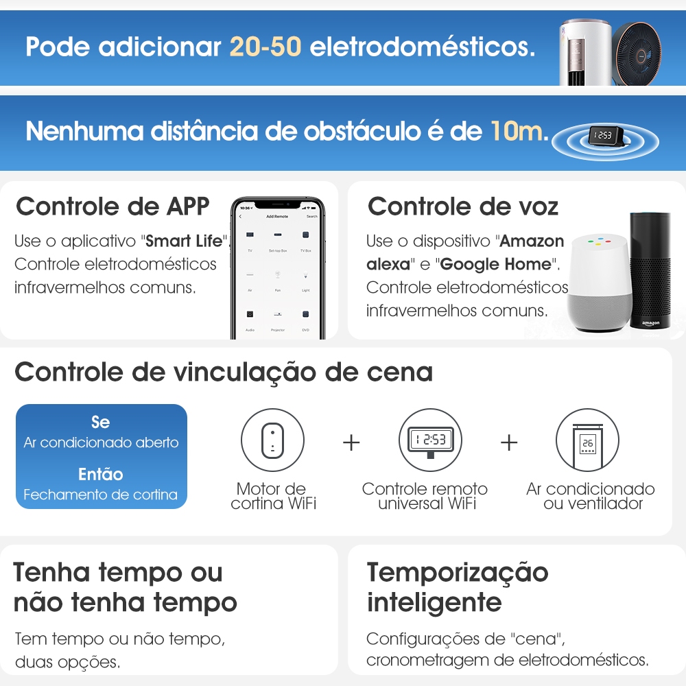 | SMATRUL Tuya Smart Wifi Controle Remoto Infravermelho IR Com Tempo ... este produto | R$ 94,64 | 60% | 5.0/5 | 1 |