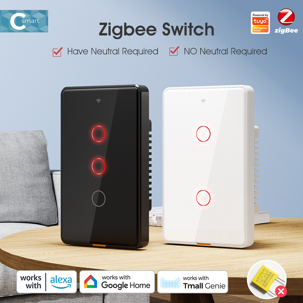SMATRUL Tuya Zigbee Interruptor Inteligente De Toque De Luz Sem Neutro Relé Magnético De Parede De Fio US 100-250v Aplicativo De Voz Tmall Genie , Alexa , Google Home Necessidade De Capacitor