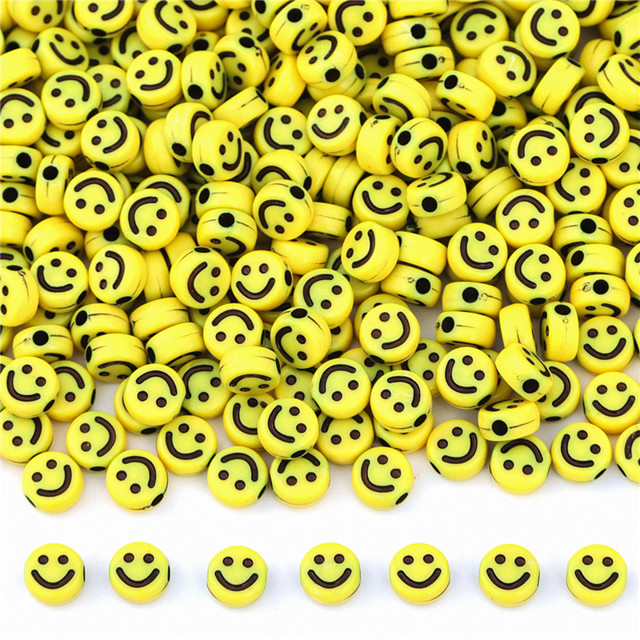Smile Carinha Feliz Sorriso Emoji 100 Un Miçanga p/ Pulseira Infantil Colar Chaveiro Smiley