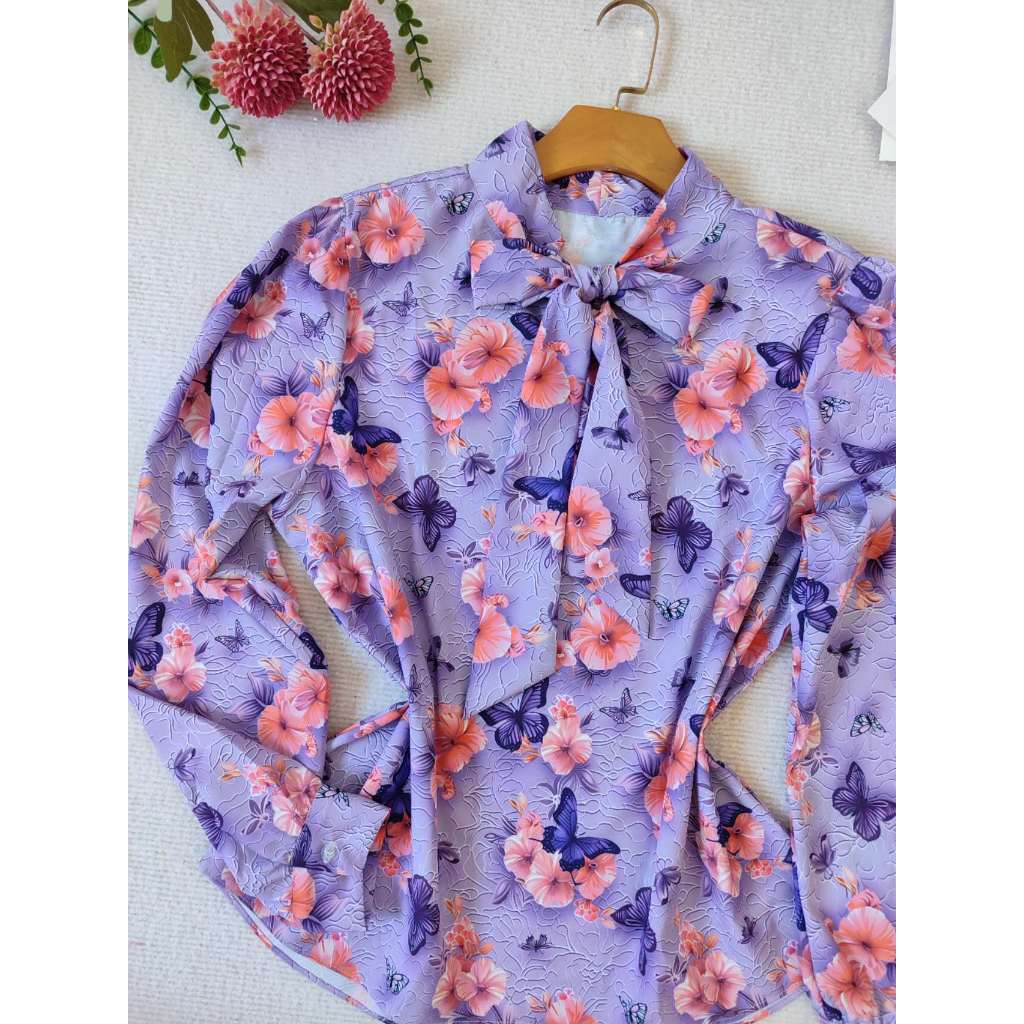 blusa feminina estamapda 3D manga longa gola laco tecido crepinho tamanho veste. M-38/40 busto 98 cm, comprimento 65 cm G-40/42 busto 102 cm, comprimento 66 cm GG-42/44 busto 106 cm, comprimento 67 cm