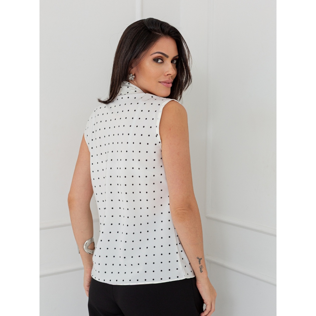 regata feminina de bolinha gola laço tecido crepinho. tamanho veste. M-36 busto 88 cm, comprimento 63 cm G-38 busto 92 cm, comprimento 64 cm GG-40 busto 96 cm, comprimento 65 cm G1-42 busto 104 cm,comprimento 66 cm G2-44 busto 106 cm,comprimento 67 cm G3-46 busto 108 cm,comprimento 68 cm