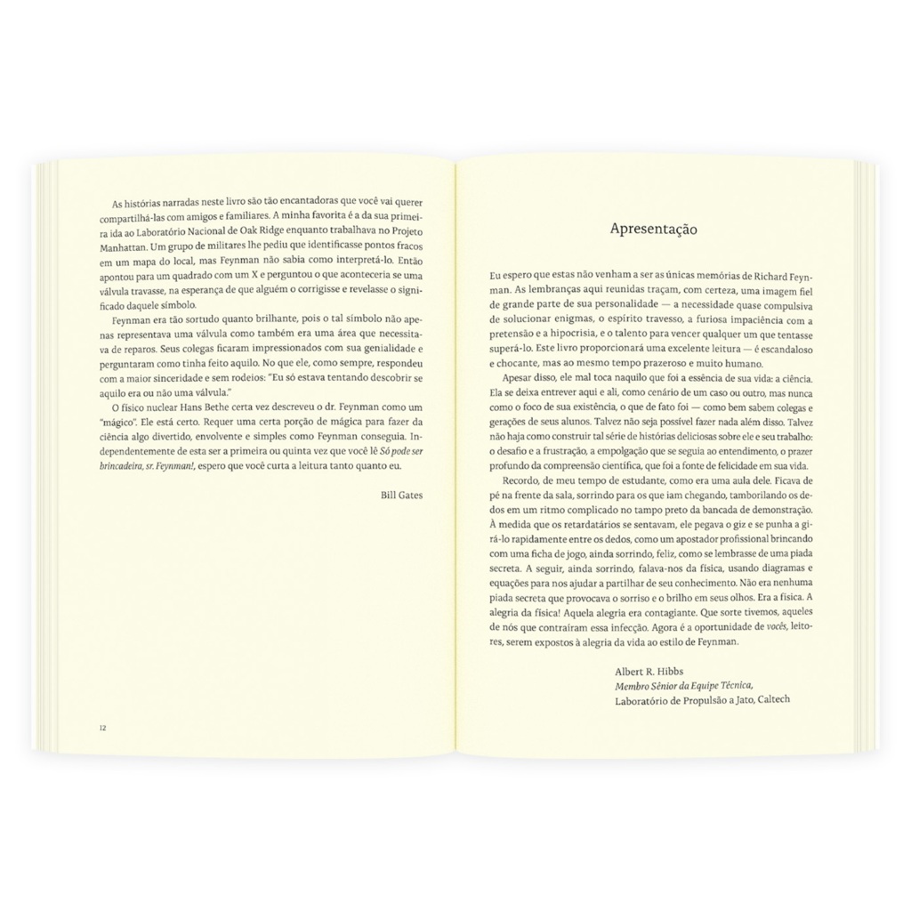 As memórias curiosas e fascinantes do físico ganhador do prêmio Nobel Richard Feynman foi um gênio incomum. Espirituoso, ele narra casos engraçados e excêntricos que cobrem desde sua infância, quando já se mostrava um menino engenhoso e brincalhão, até o momento em que recebeu o prêmio Nobel de Física, em 1965, época em que já expressava sua personalidade desafiadora e fora dos padrões que o tornou extremamente popular dentro e fora da área acadêmica. Suas palestras sobre física, um marco na vida de outras personalidades extraordinárias, como Bill Gates — que assina uma breve introdução a este livro —, encantaram gerações de estudantes e interessados em conhecimento científico. A notável capacidade intelectual de Feynman se iguala ao seu impulso por aprender: instrumentos musicais, pintura, idiomas, comportamento humano, biologia, entre outros. Narrador inteligente e bem-humorado, Feynman mostra, entre as muitas histórias curiosas reunidas nesta edição, por que é um dos intelectuais mais adorados de sua geração e até hoje fascina todos os apaixonados por ciência. Sobre o autor: "Richard P. Feynman, contemporâneo de Einstein e ganhador do Nobel de Física em 1965, foi uma das mentes mais talentosas de seu tempo e um dos maiores entusiastas da divulgação científica. Muito brincalhão, o cientista sempre lembrava aos seus alunos e amigos o quanto a ciência poderia ser divertida. Detalhes do Livro: Tradução: Donaldson Garschagen e Renata Guerra Páginas: 368 Gênero: Biografia Formato: 16 x 23 x1,5 cm Peso: 673 gramas Tipo de capa: Brochura Lançamento: 03/02/2025