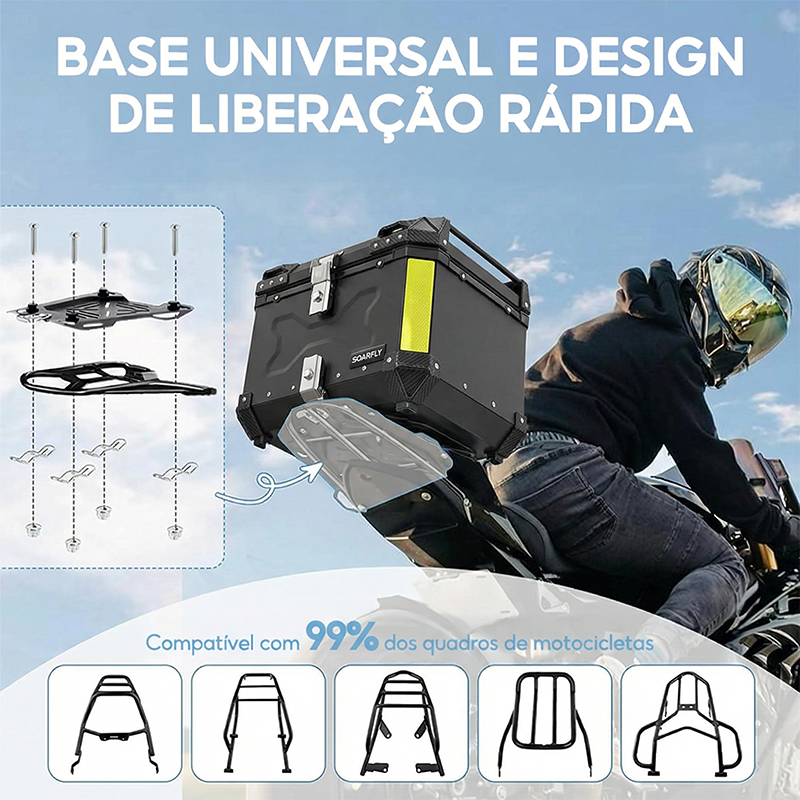 Soarfly Baú Para Moto Baú De Alumínio Para Motocicleta 55 Litros + Suporte + Encosto+dois Tipos De Adesivos Refletivos