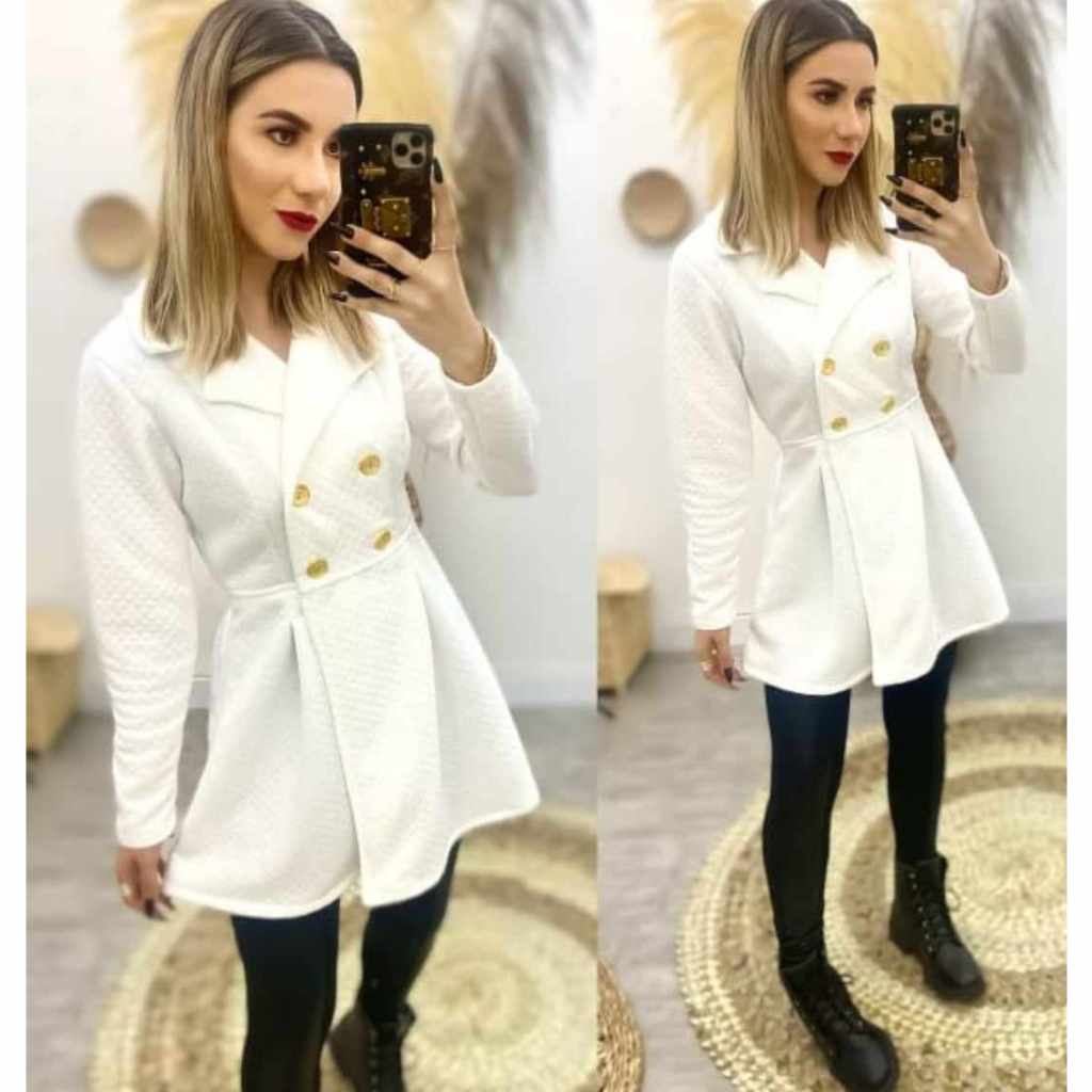 * SobreTudo Feminino * TAMANHOS P veste 36 M veste 38/40 G veste 42/44 Tecido: Matelassê Botões: dourados com fechamento Estilo: Casual, elegante - Sem forro Saia rodada; Decote V com Gola