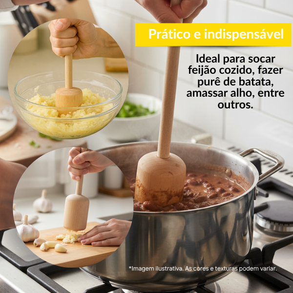 O socador de feijão em madeira 27cm traz o toque rústico e artesanal das cozinhas tradicionais. Produzido em madeira natural, é resistente, durável e perfeito para amassar feijão, batata, alho e outros alimentos. Um utensílio prático e indispensável em qualquer cozinha! Características do Produto: - Material: Madeira de reflorestamento - Tamanho: 27cm de comprimento - Leve, resistente e confortável durante o uso Destaques: - Produto artesanal nacional - Alta durabilidade - Prático e funcional *** ENVIO RÁPIDO EM ATÉ 24 HORAS ÚTEIS – COMPRE COM TRANQUILIDADE! Ficou com alguma dúvida? Fale conosco pelo chat – o atendimento é rápido e direto! Aproveite o desconto no frete para pedidos acima de R$19,00: resgate seu cupom e garanta produtos de qualidade com praticidade. A sua opinião faz toda a diferença! Avalie sua compra e nos ajude a evoluir cada vez mais. Agradecemos por escolher a VERSATIL. Boas compras e até a próxima!