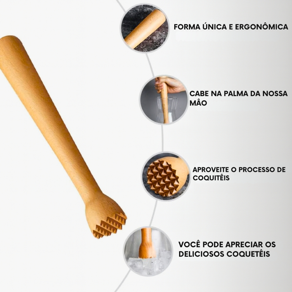 Socador Macerador Bebidas Madeira Drinks Cozinha Utensilio Bar